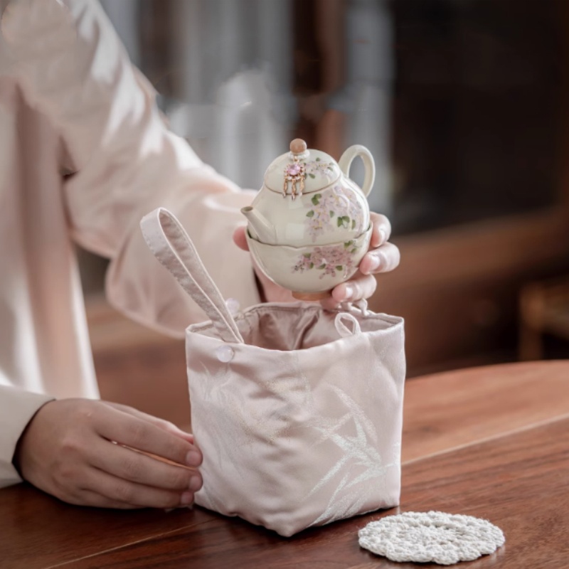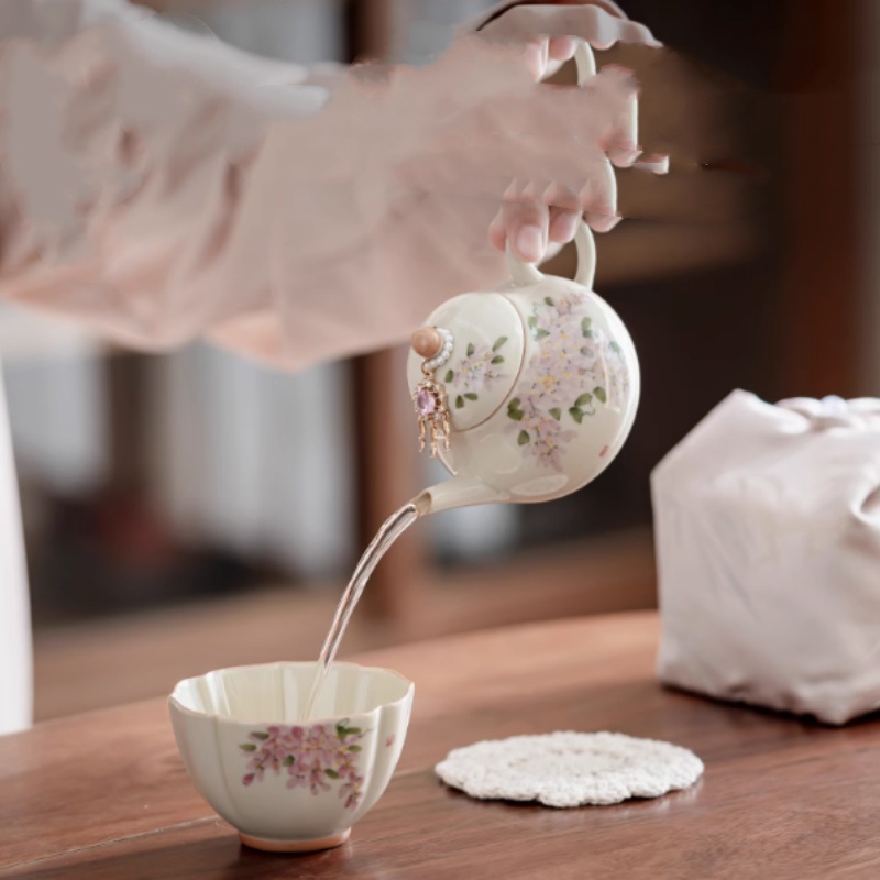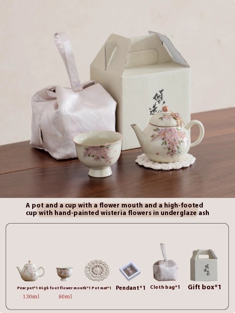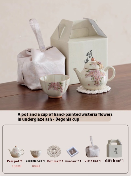 Color classification: Underglaze hand-painted Wisteria with wood ash - One pot and one cup \ nUnderglaze hand-painted Wisteria with wood ash - One pot and one cup \ nFlower Mouth \ nUnderglaze hand-painted Wisteria with wood ash - One pot and one cup \ nCrabapple Cup