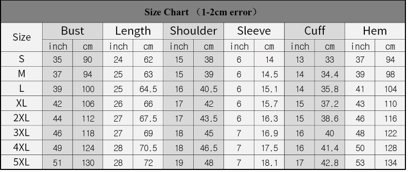 Size: S, M, L, XL, XXL, 3XL, 4XL, 5XL
