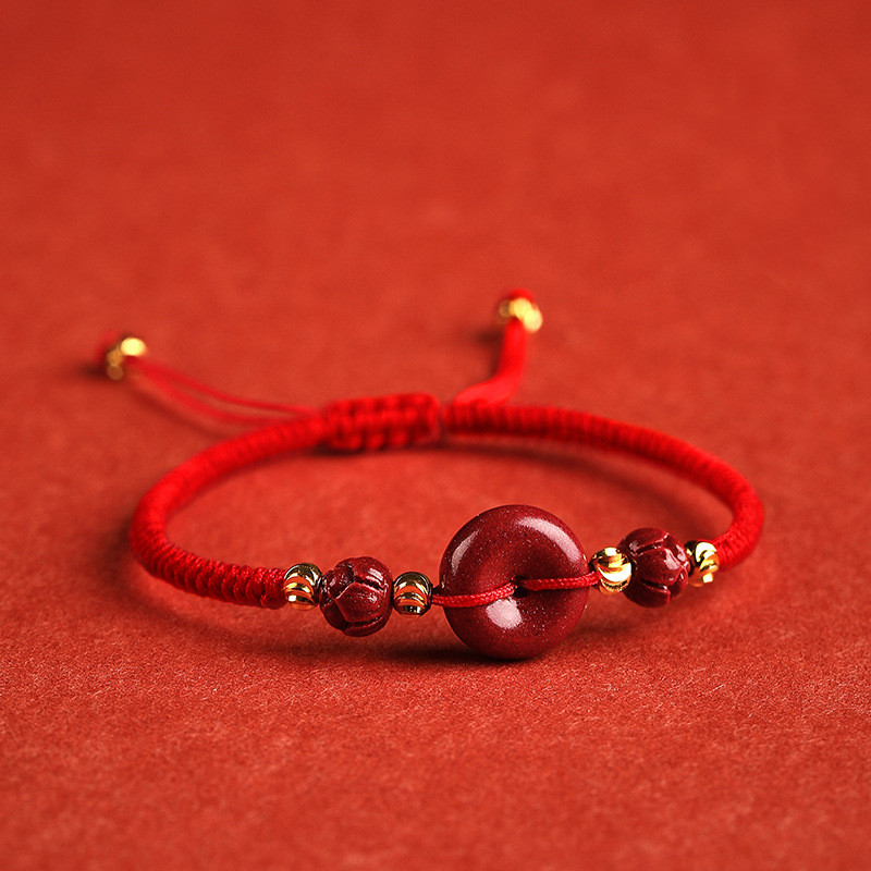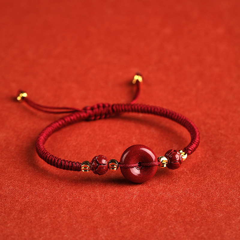 Product information:Color: red rope, wine red rope, black rope Style: Unisex Material: Cinnabar Popular elements: patterns, stripes, lace Style: National style
