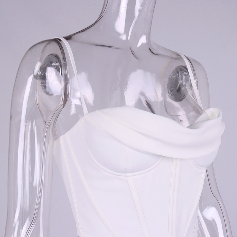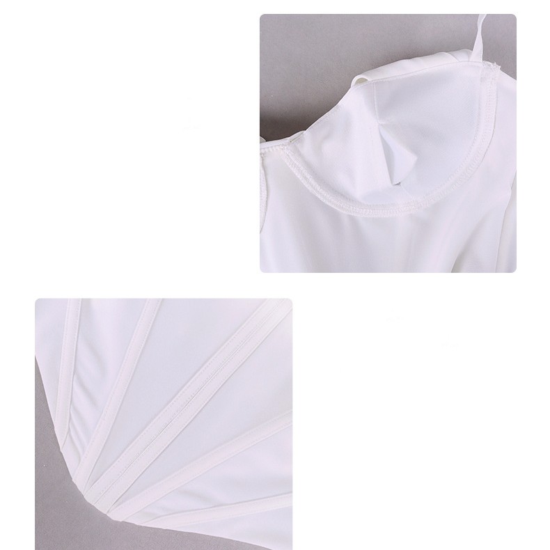 Popular elements: zipper, backless, fishbone steel ring chest pad fold.