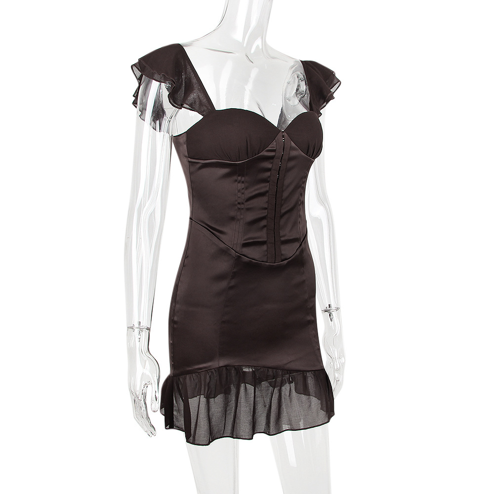 Color: chocolate, high-grade thick super elastic satin, with chest Cotton