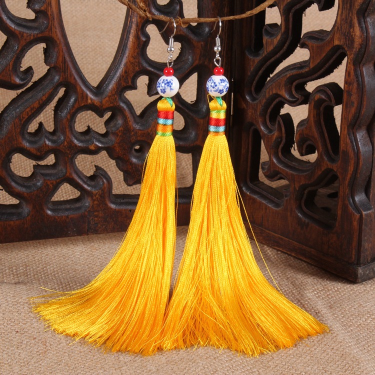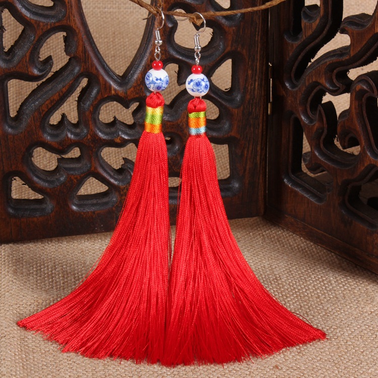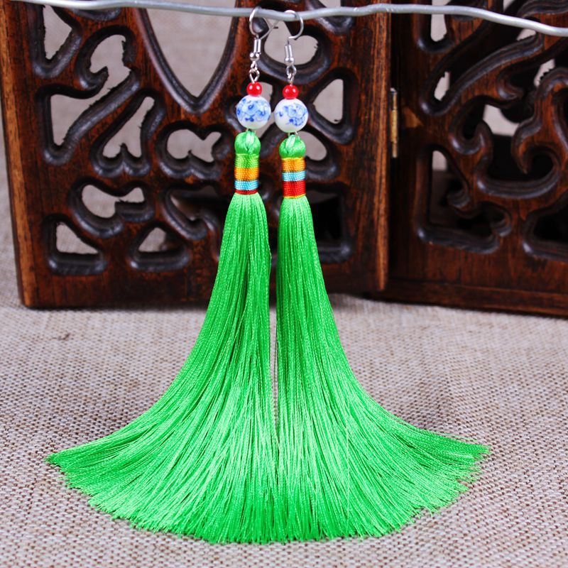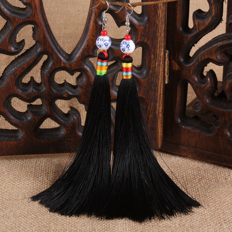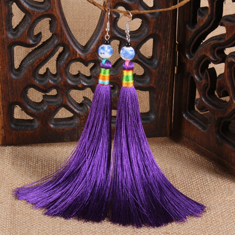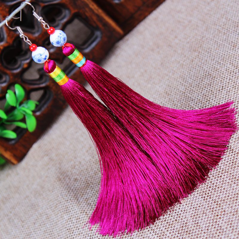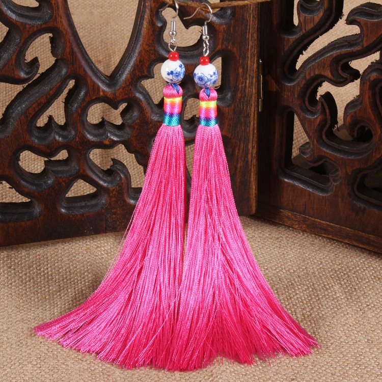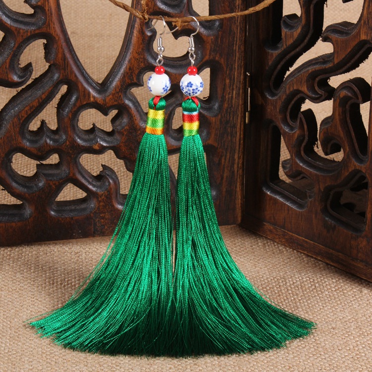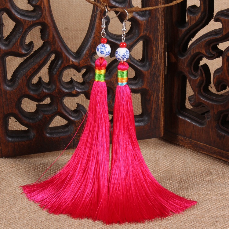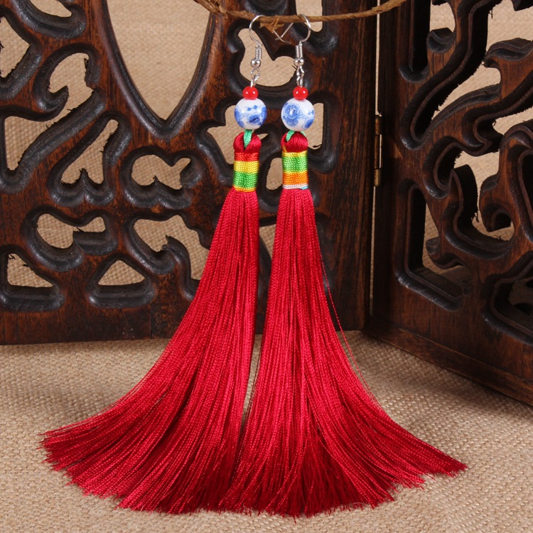 Retro Ethnic Style Jewelry Handmade Characteristic Long Tassel Earrings Ethnic Jewelry Earrings