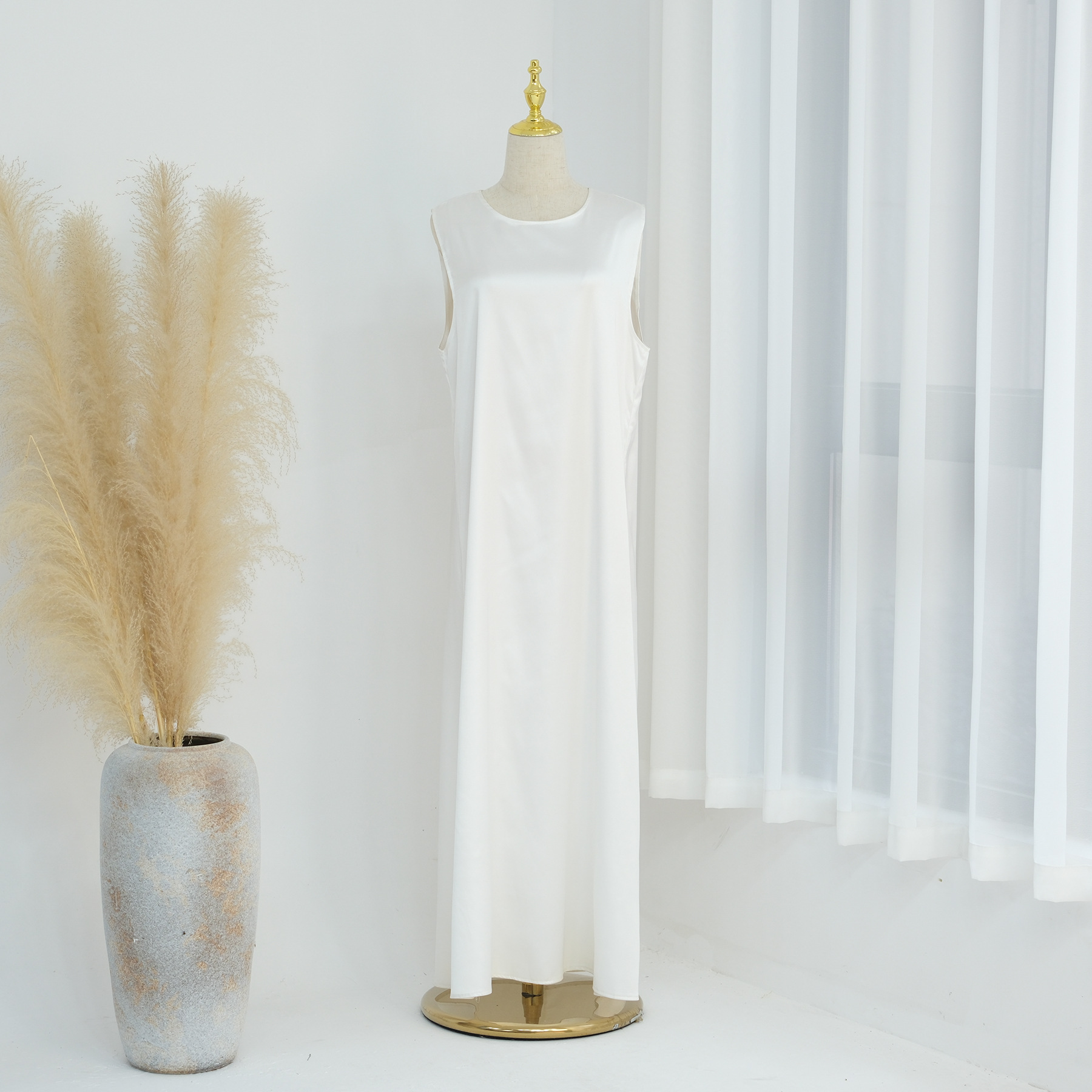 Color: blue, pink, taro, white inner sleeveless dress