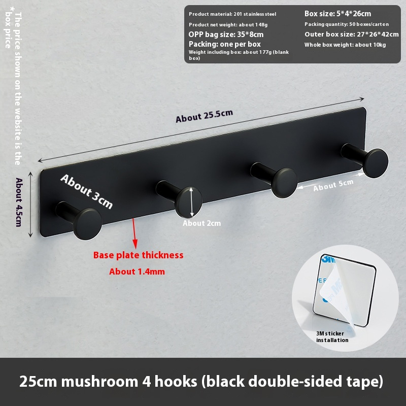 Color: 9cm mushroom 2 hooks (white double-sided tape),18cm mushroom 3 hooks (white double-sided tape),25cm mushroom 4 hooks (white double-sided tape),9cm mushroom 2 hooks (black double-sided tape),18cm mushroom 3 hooks (black double-sided tape),25cm mushroom 4 hooks (black double-sided tape)