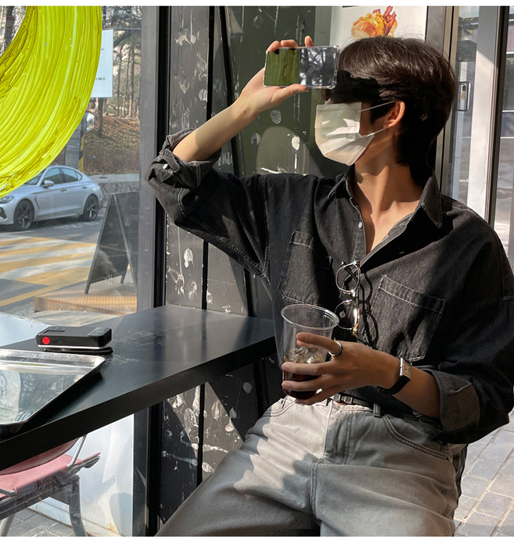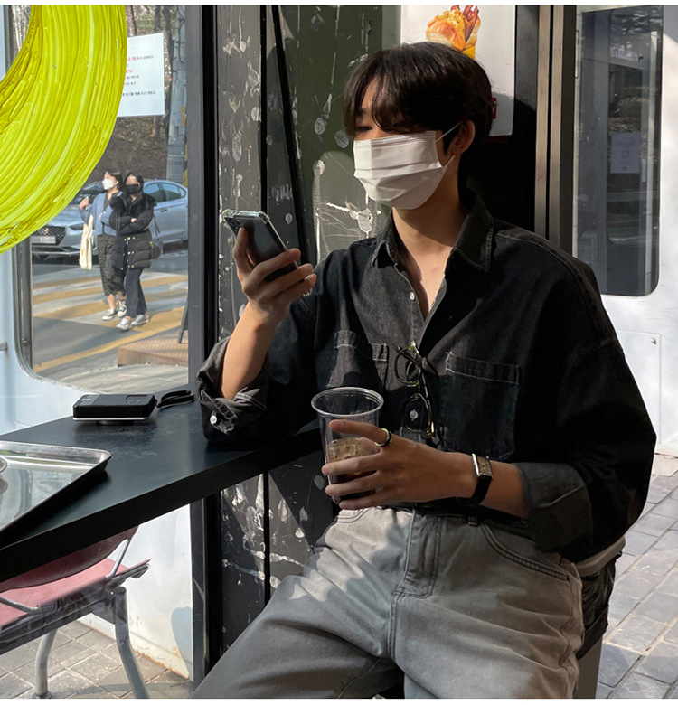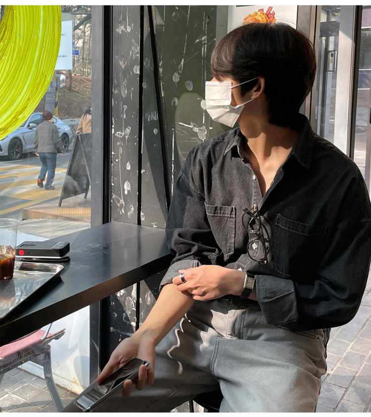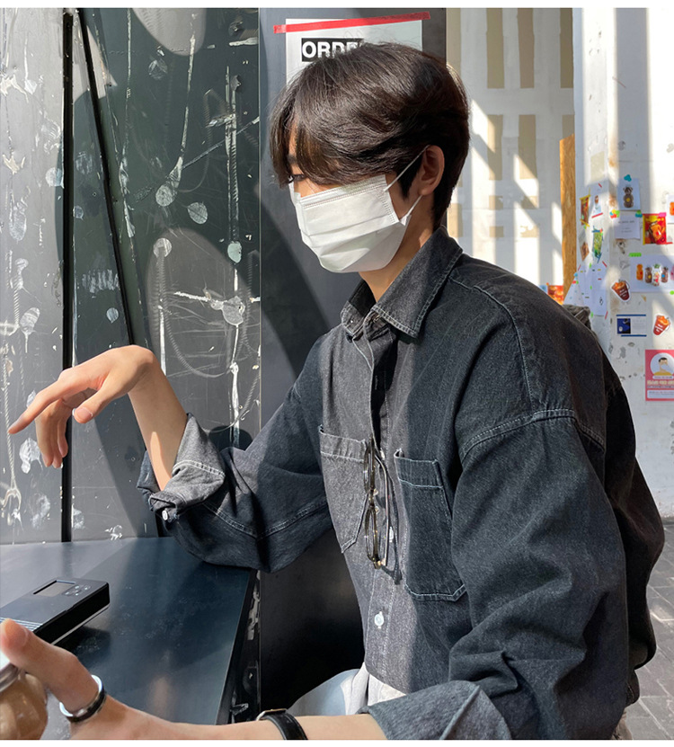 Product information: Color: Black, Blue Size: M,L,XL,XXL Style: Cardigan Fabric name: Denim Applicable scenarios: Leisure Style: Hong Kong style Process: non-ironing treatment