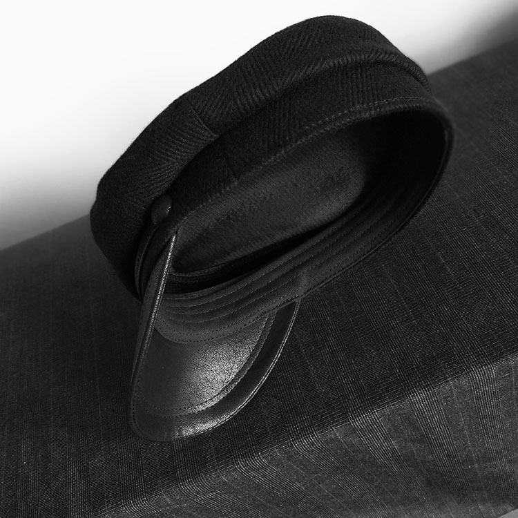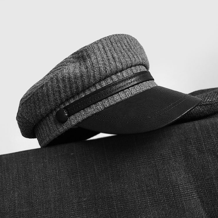 Color: navy hat-medium gray vertical stripes autumn and winter, Navy hat-black mechanism autumn and winter, Navy hat-dark gray herringbone pattern autumn and winter, Navy hat-black herringbone pattern autumn and winter