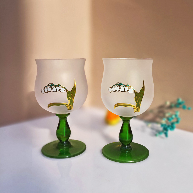 Product information:Color: Medieval Ling Blue Cup Style type: mild luxury retro Material: crystal glass Category: Wine Glass Style: flowering Style: retro style