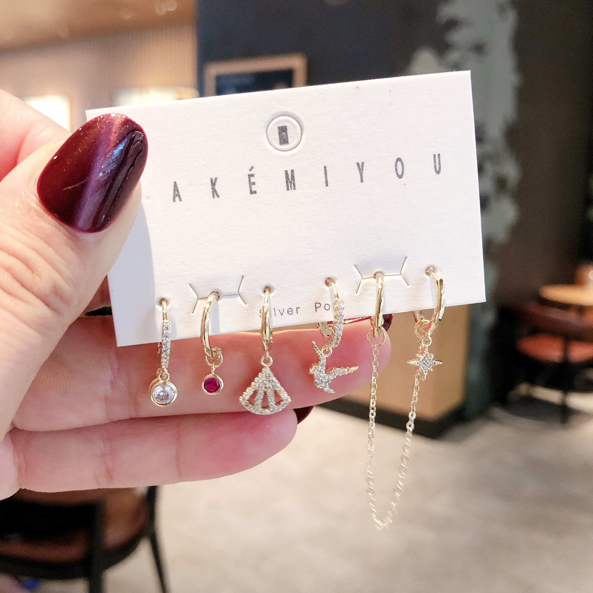 Material: AlloyTreatment process: electroplatingType: EarringsStyle: Women'sModeling: Animal/ZodiacPackaging: Individually packedInlay material: alloy inlaid artificial gems/semi-precious stonesColor: fan-shaped seagull star chain