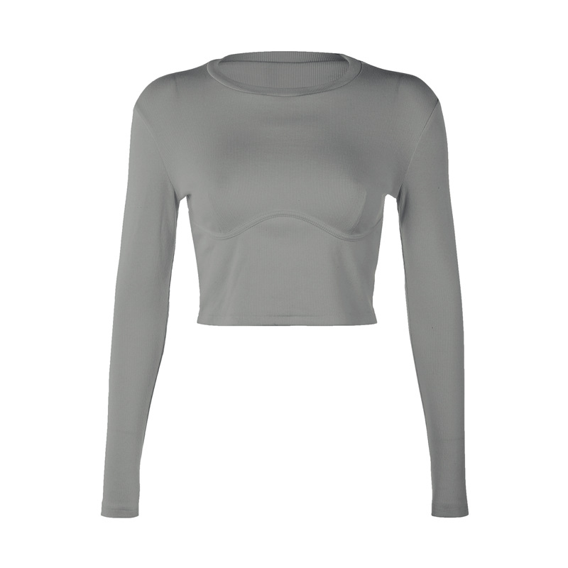 Popular elements: stitching, solid color, round neck, fashion, self-cultivation, versatile, waist, navel, breast shape, thin