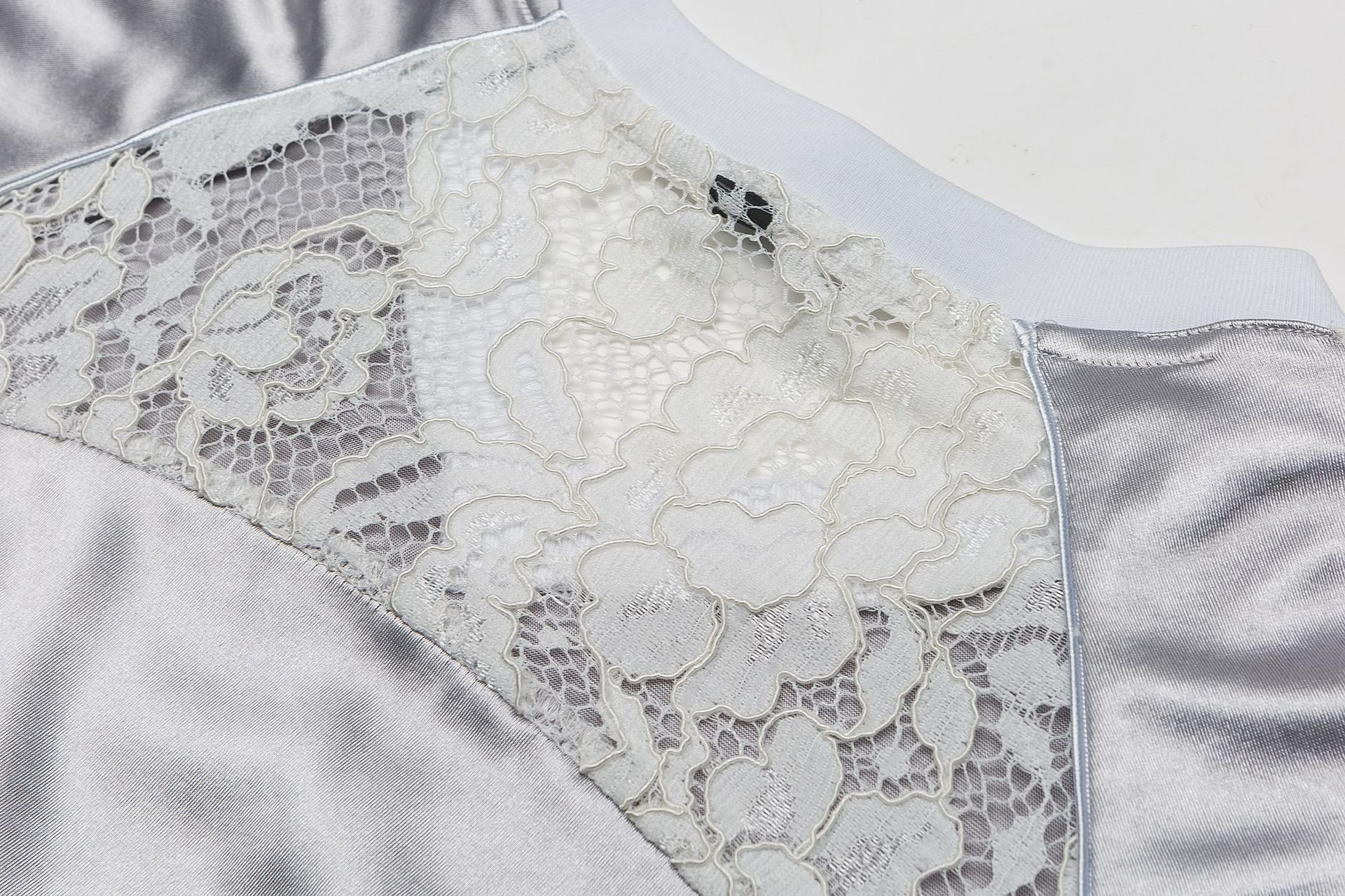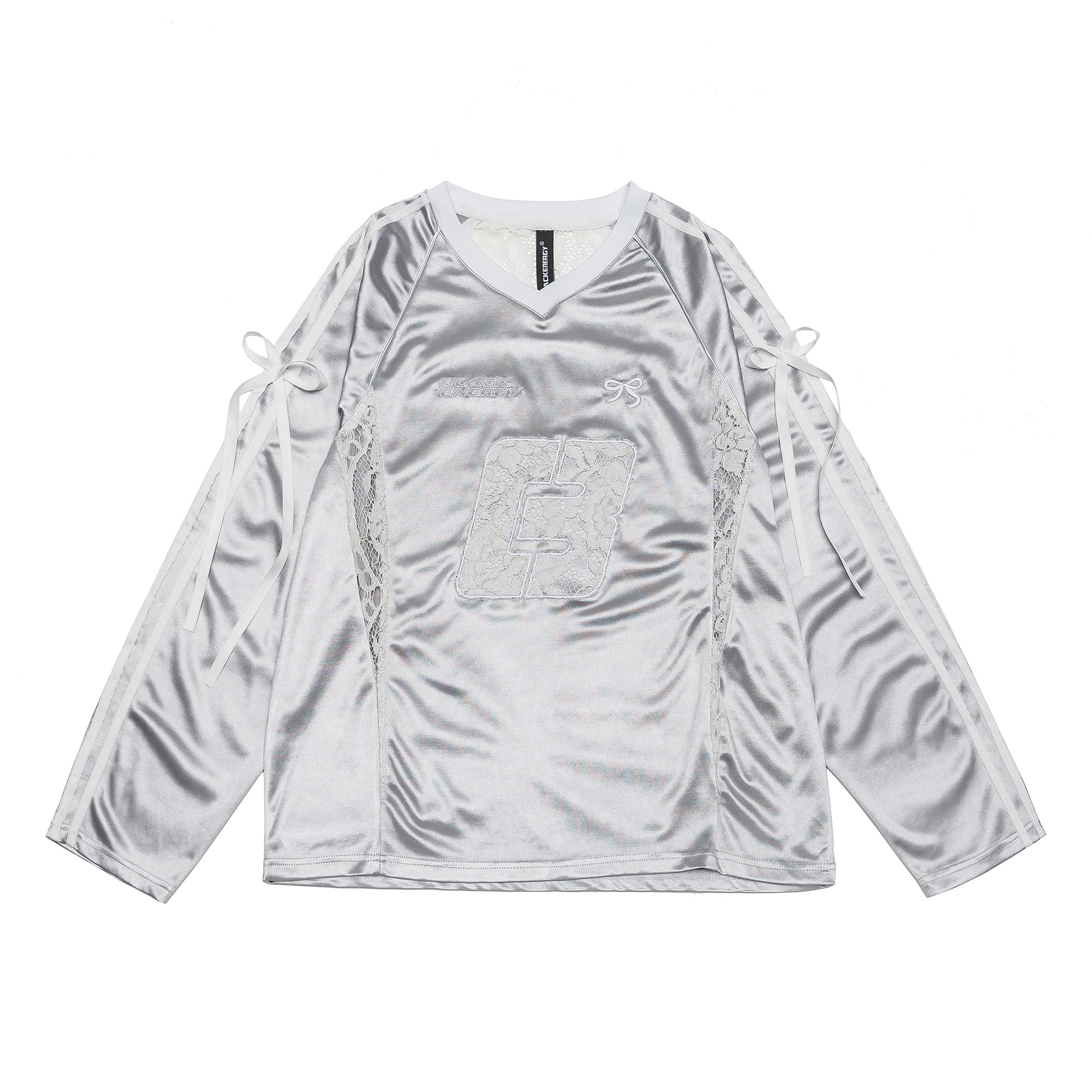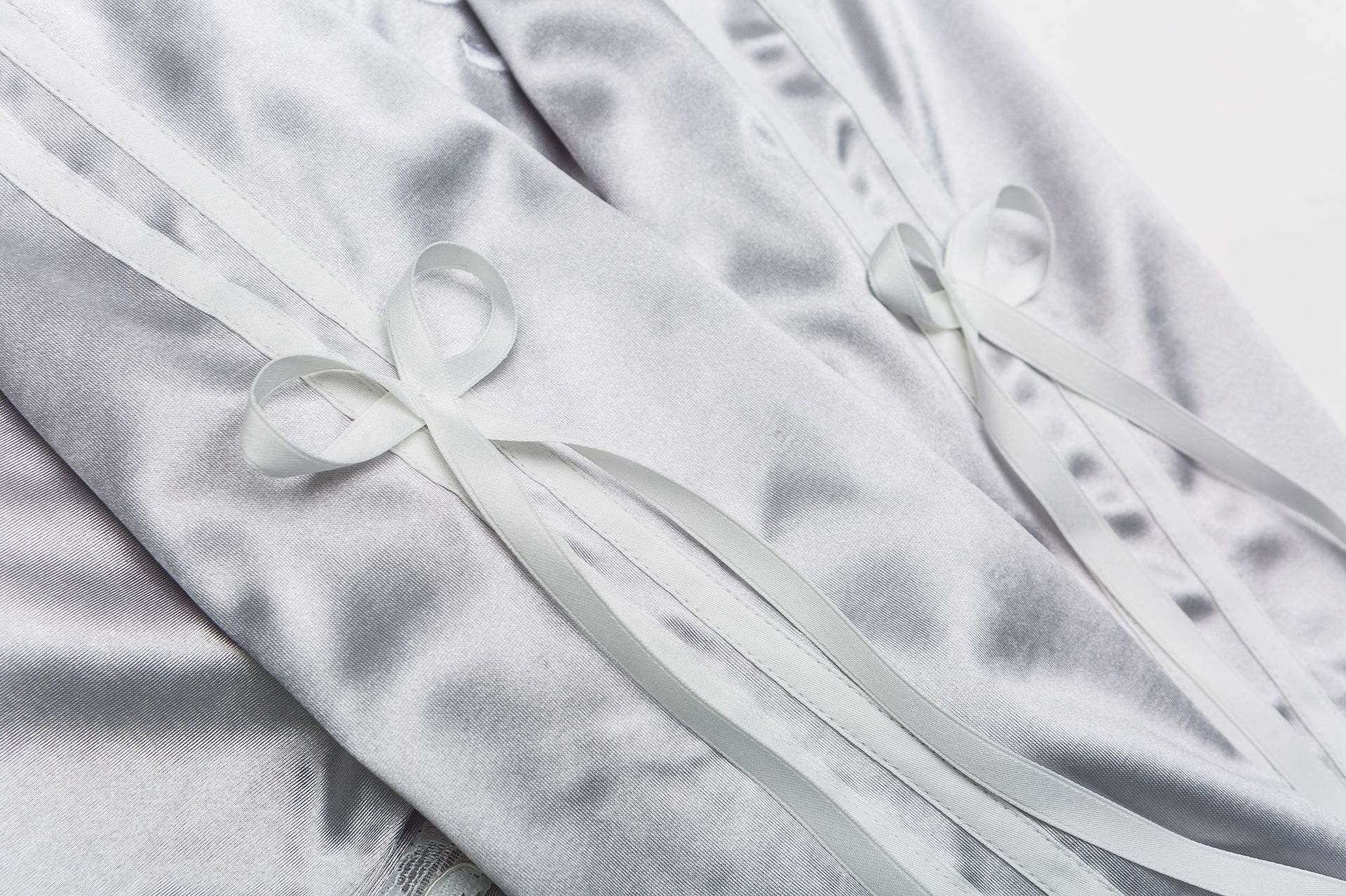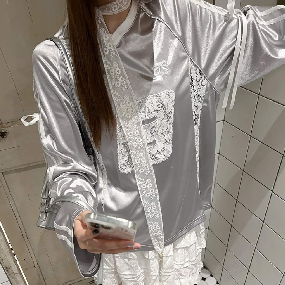 Women's Lace Stitching Bow Drawstring Satin T-shirt