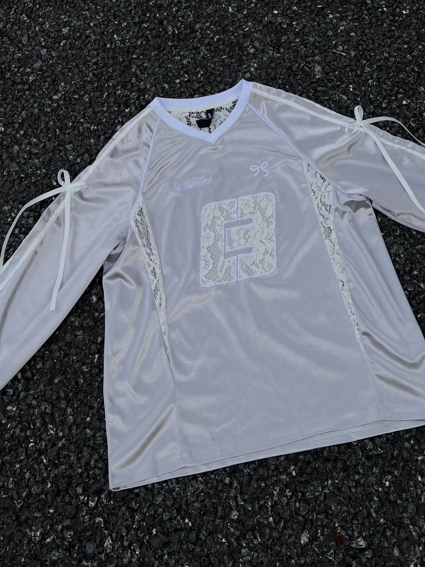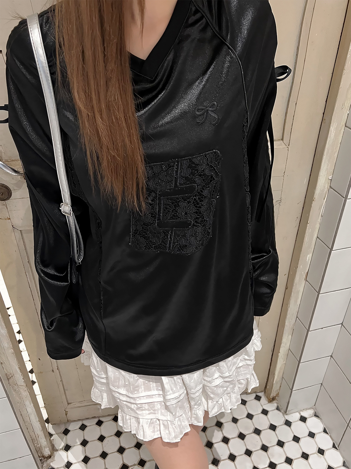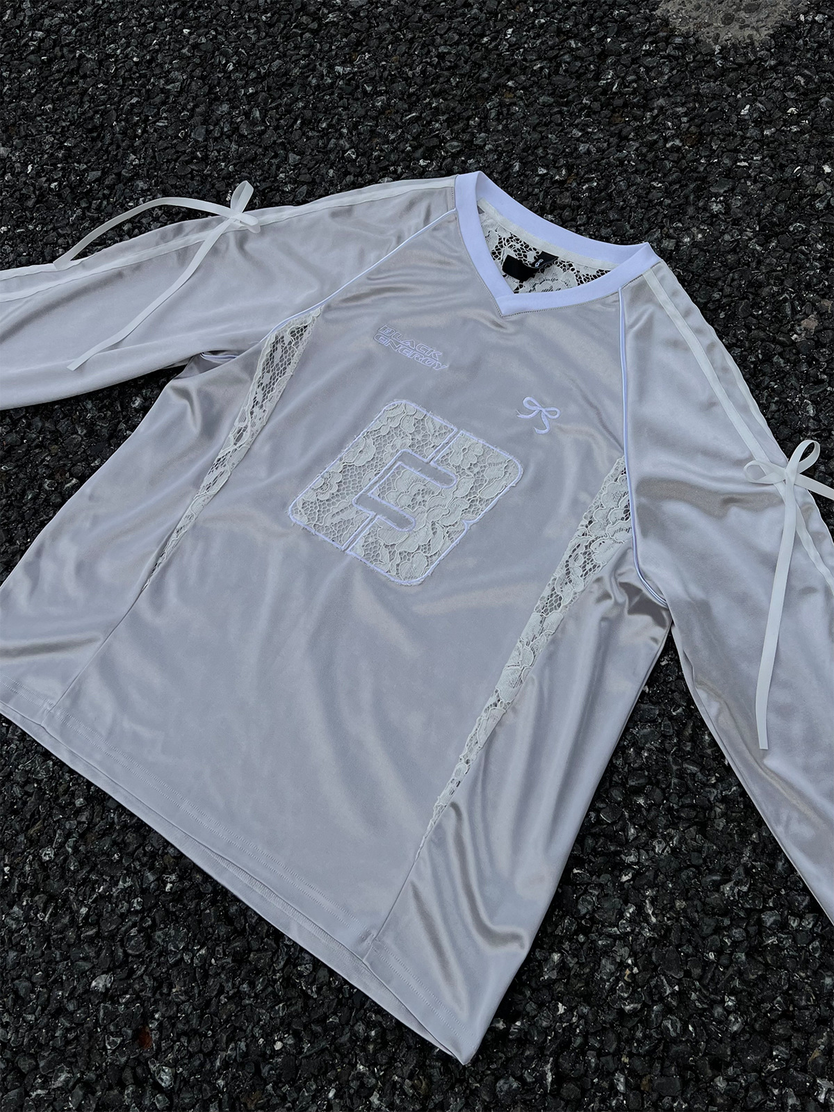 Women's Lace Stitching Bow Drawstring Satin T-shirt