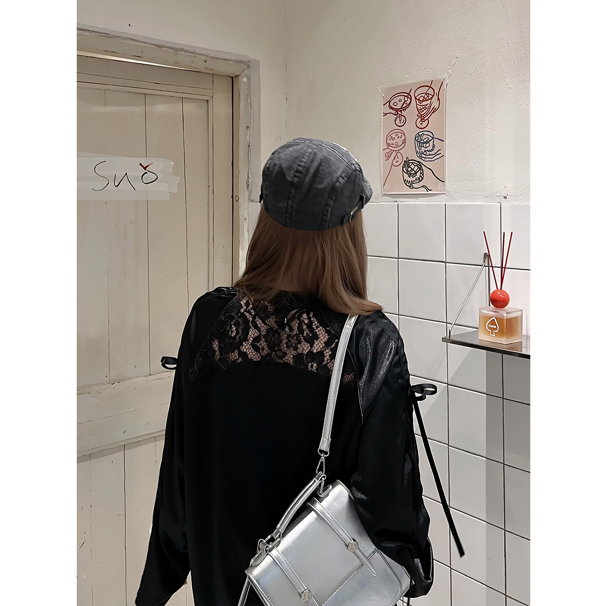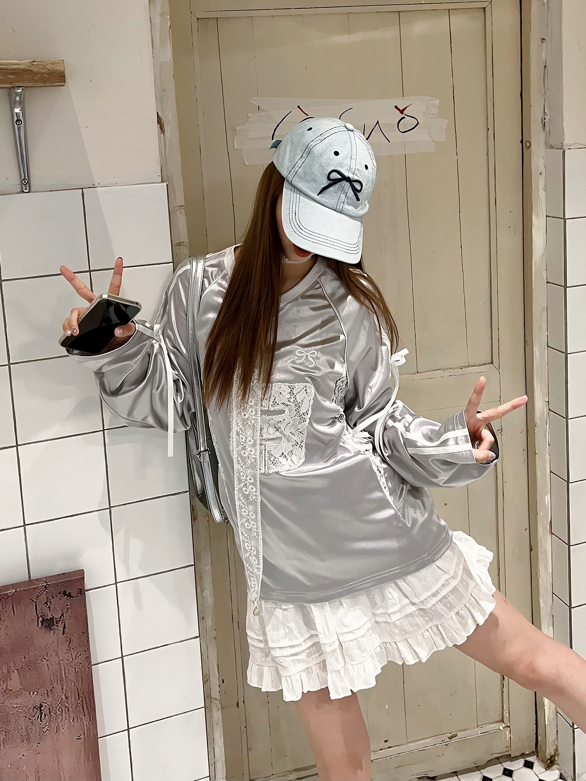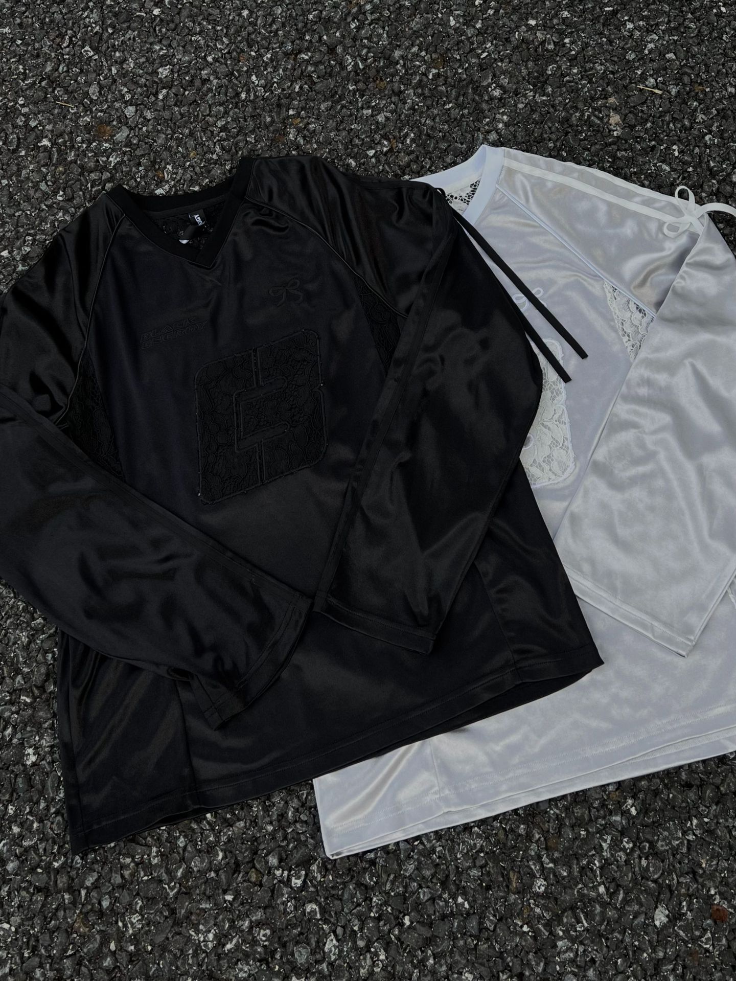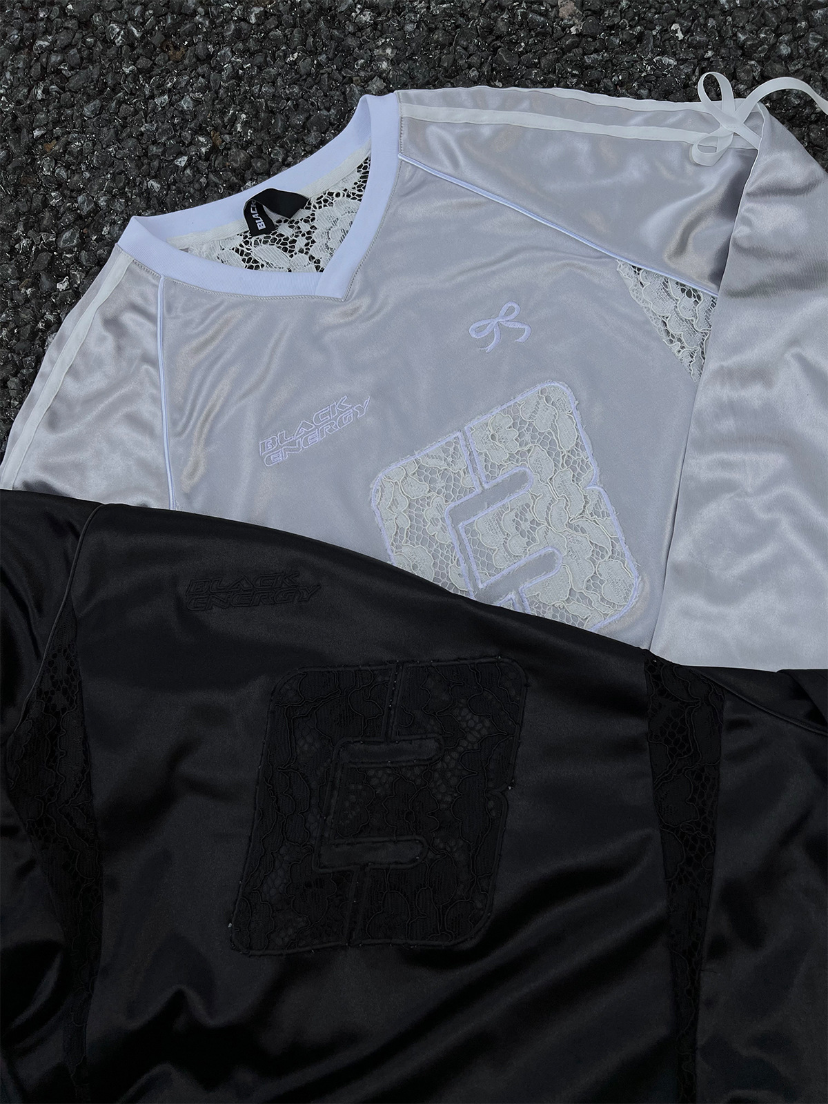 Women's Lace Stitching Bow Drawstring Satin T-shirt