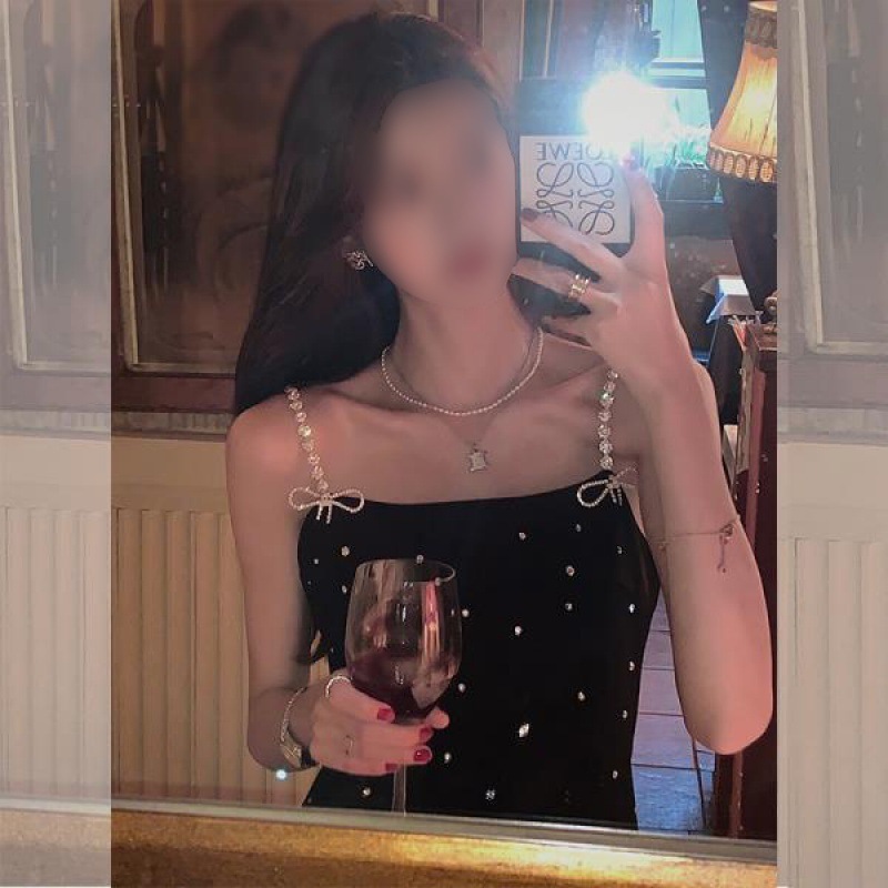 Color: black single hanging skirt, top