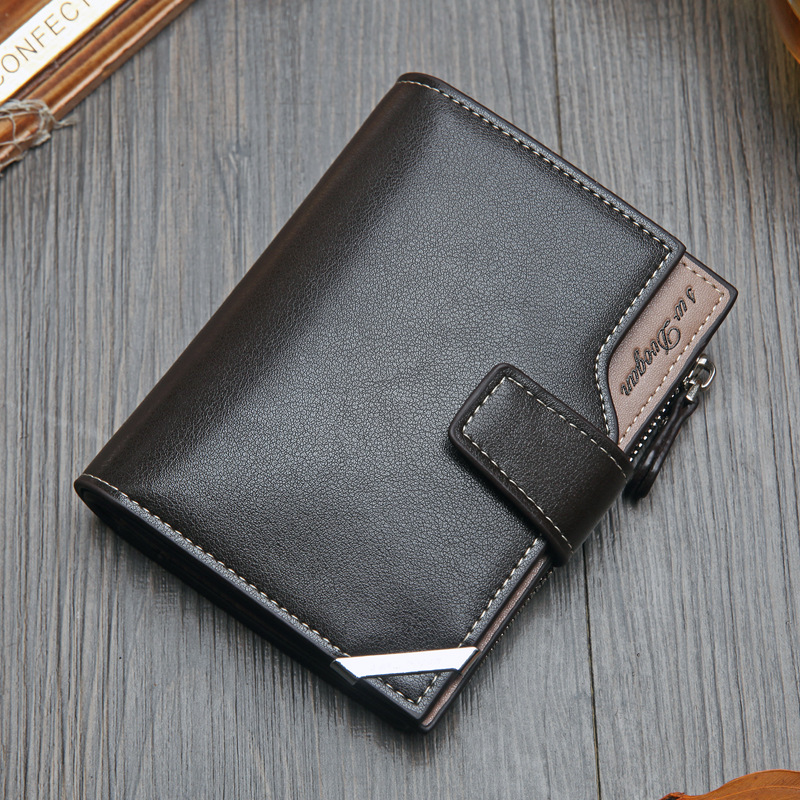 Material: PU leatherWallet fold: 3 foldOpening method: zipper buckleBag shapes: square vertical sectionLength: shortColor: black, brown