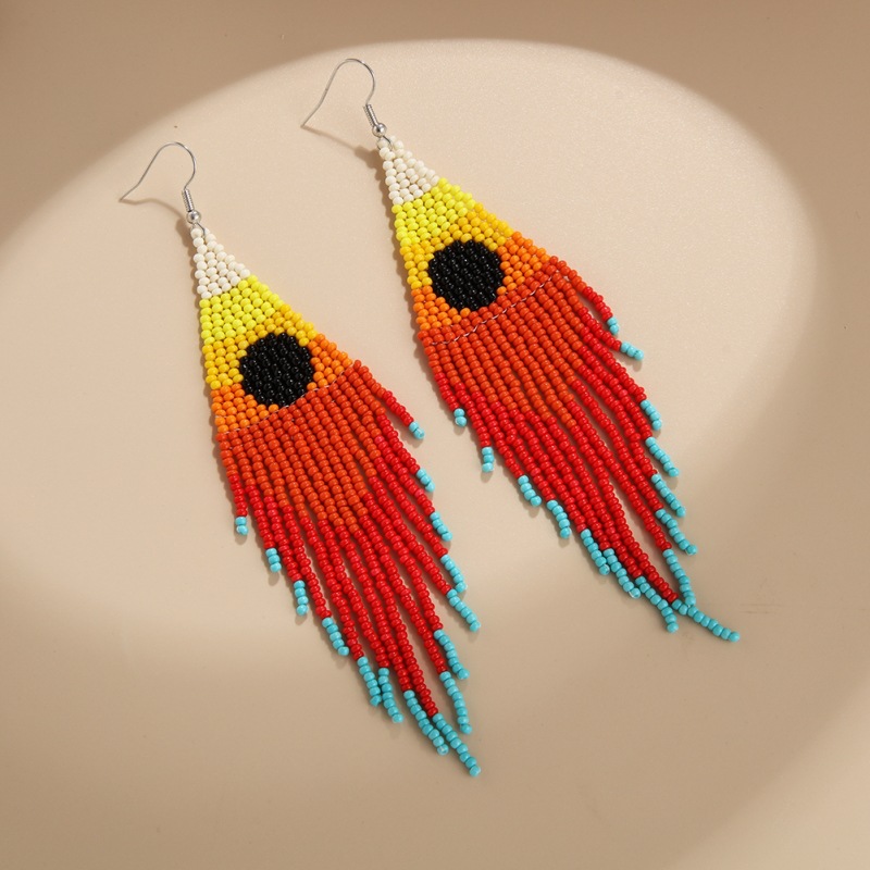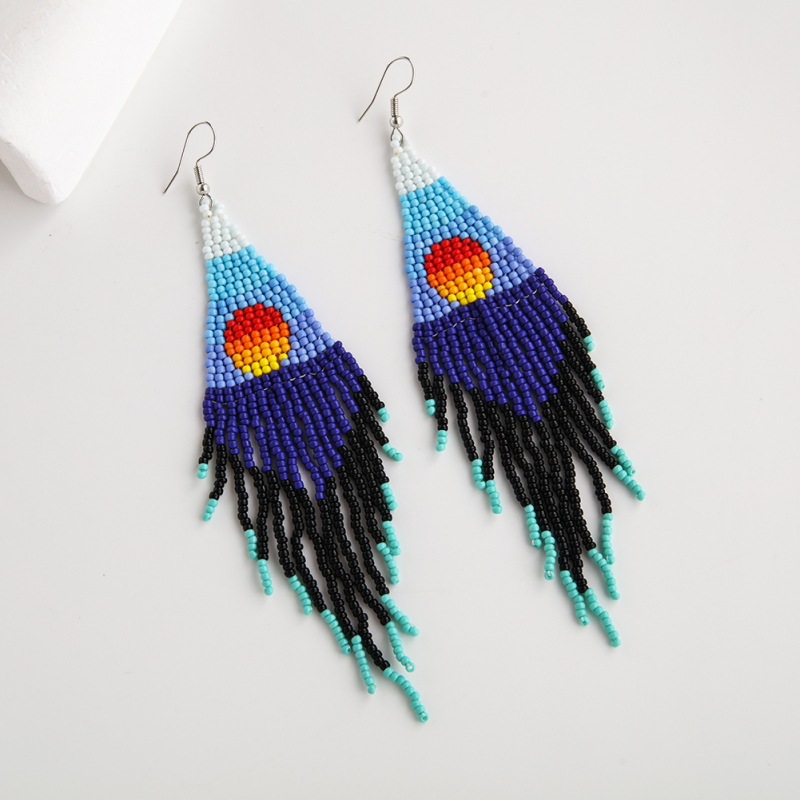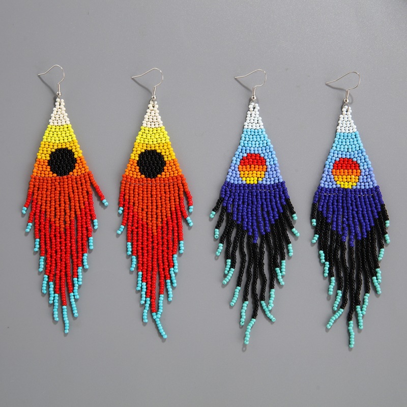 Product information:Treatment Process: hand-woven Color: EA1993 Red series, EA1993 Blue Applicable population: Female Material: beads Shape: Geometry Popular elements: Tassel Style: Bohemian style