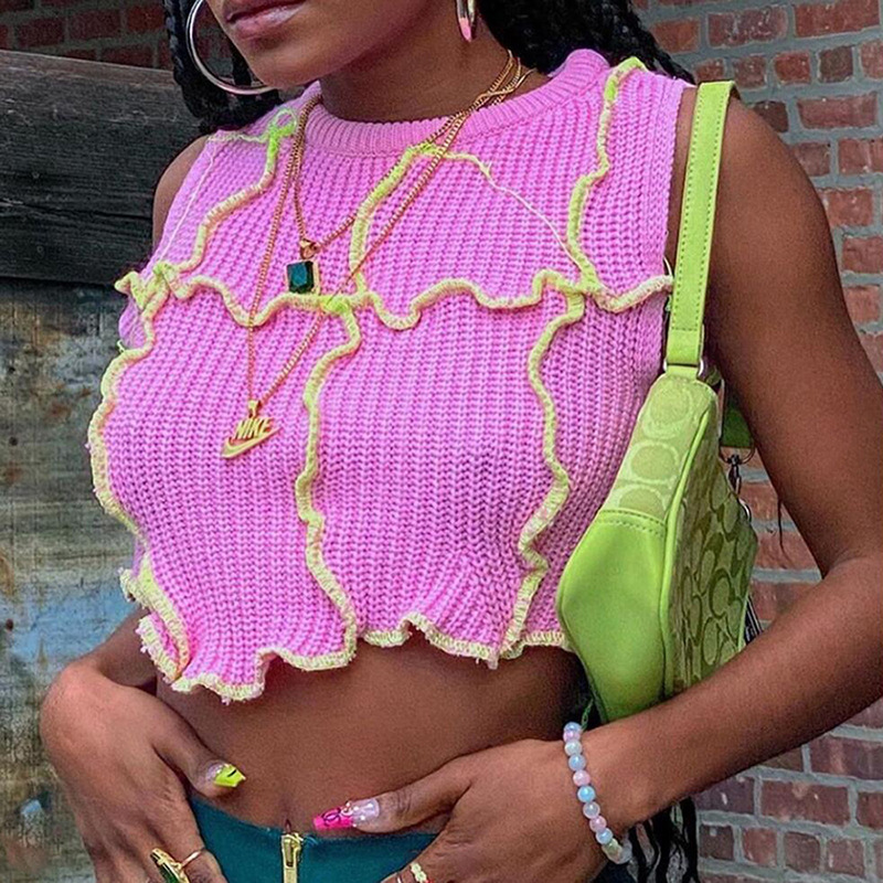 Length: Short style (40cm<length≤50cm) Collar type: Round neck Popular elements; Contrasting color, stitching