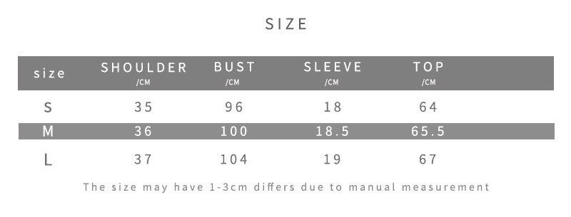 1. Asian sizes are 1 to 2 sizes smaller than European and American people. Choose the larger size if your size between two sizes. Please allow 2-3cm differences due to manual measurement. 2. Please check the size chart carefully before you buy the item, if you don't know how to choose size, please contact our customer service. 3.As you know, the different computers display colors differently, the color of the actual item may vary slightly from the following images.
