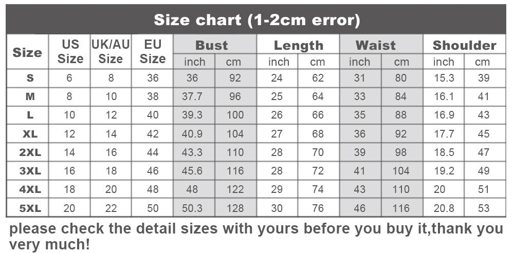 2. Please check the size chart carefully before you buy the item, if you don't know how to choose size, please contact our customer service.