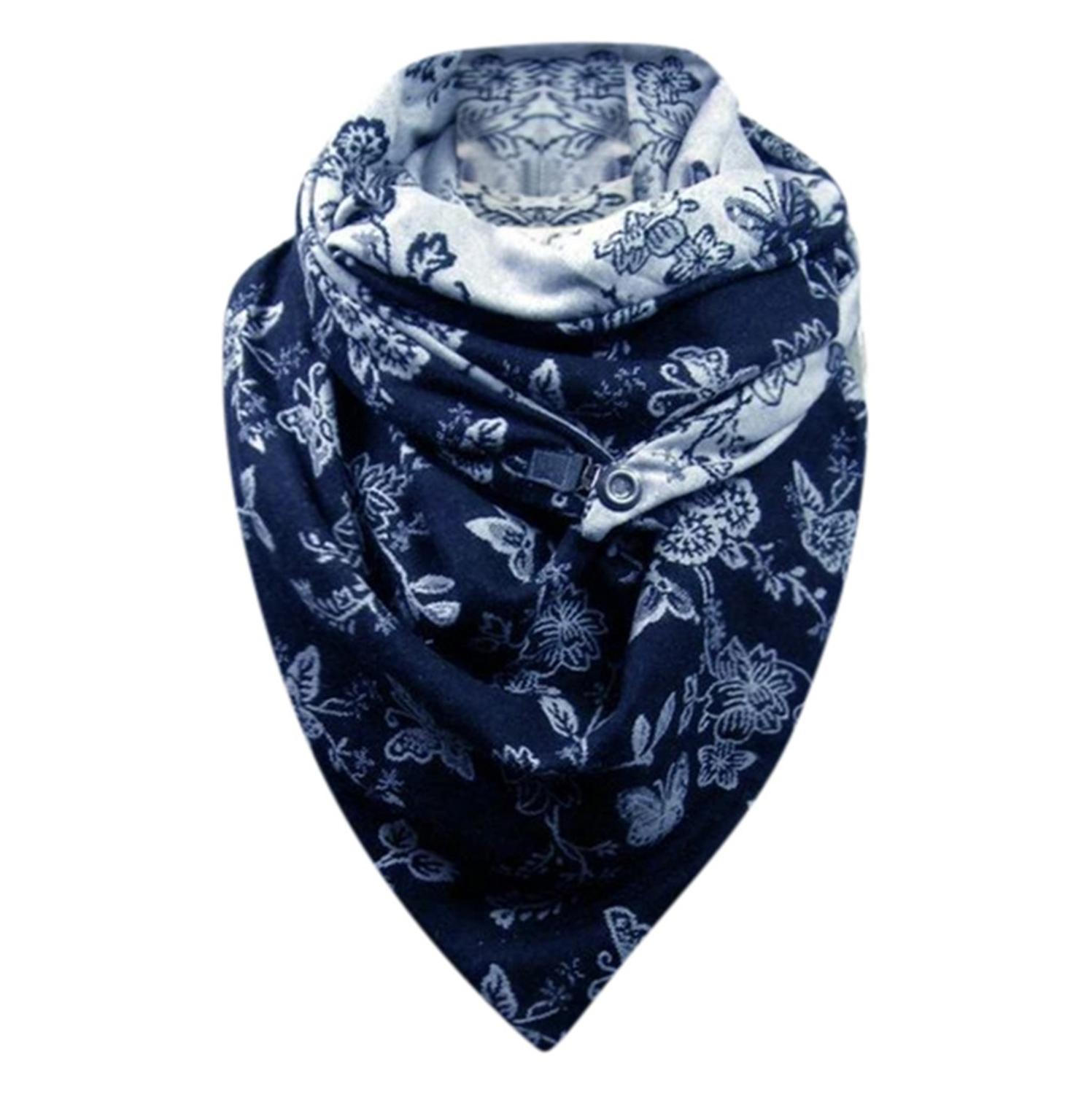 Fashionable Women's Solid Stitch Print Button Wrapped Soft Casual Warm Scarf Shawl