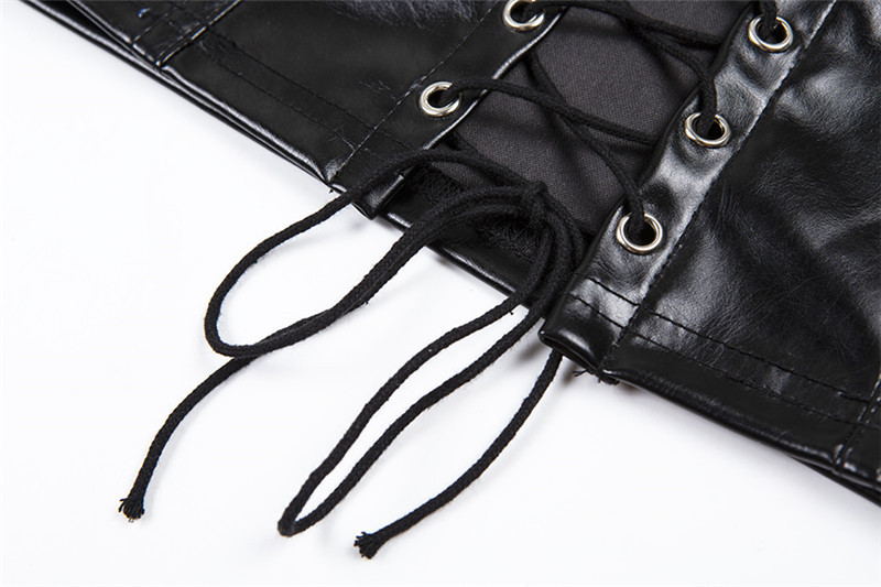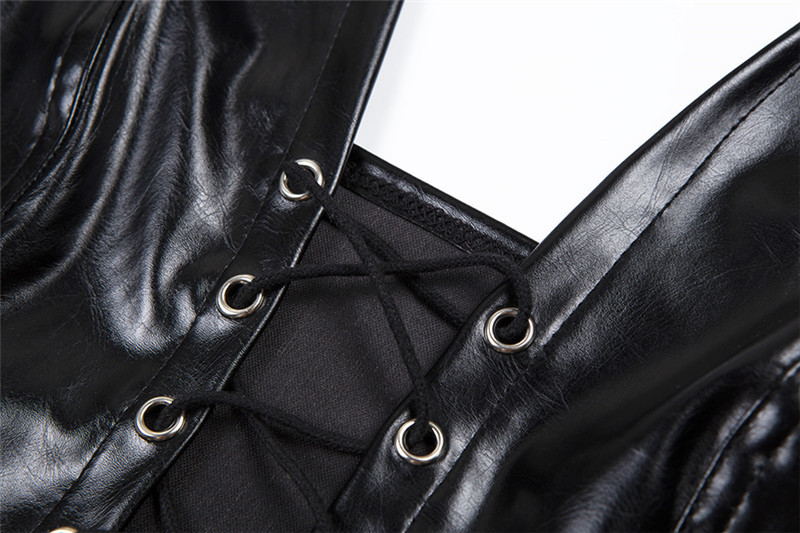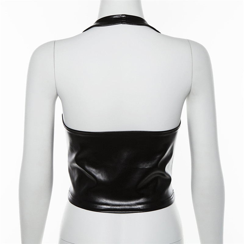Black PU Leather Sexy Halter Crop Top Rave Festival Hollow Out Backless Tank Tops Women Summer Streetwear