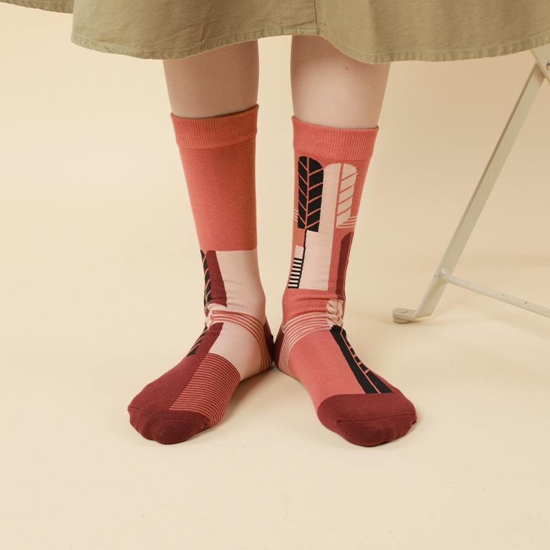 Color: polka dot lines, gray black houndstooth, yellow green black stripes, purplish red tall trees, Orange blue Woods