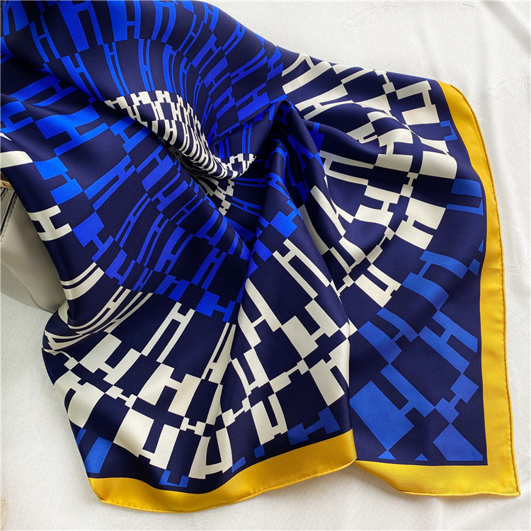 Product information:Material: SilkColor: black and white letters, blue lettersStyle: European and American streetLength (CM): 88cmWidth (CM): 88cmWeaving method: twill