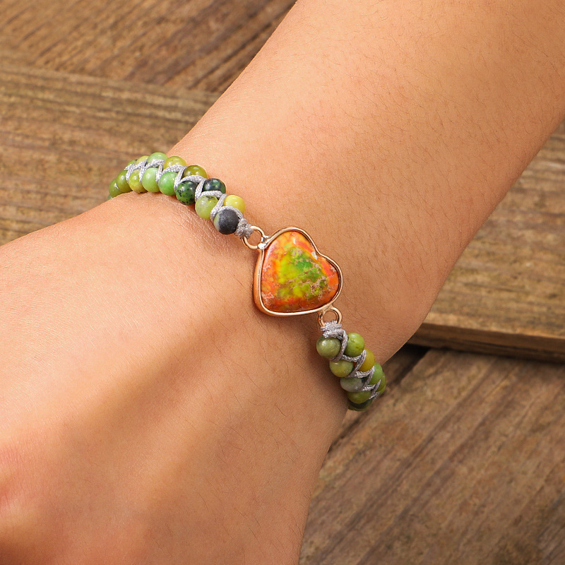 Material: StoneProcessing technology: hand-wovenType: BraceletStyle: UnisexShape: love heart shapeHealth function: decorationPackaging: Individually packedInlay material: stone