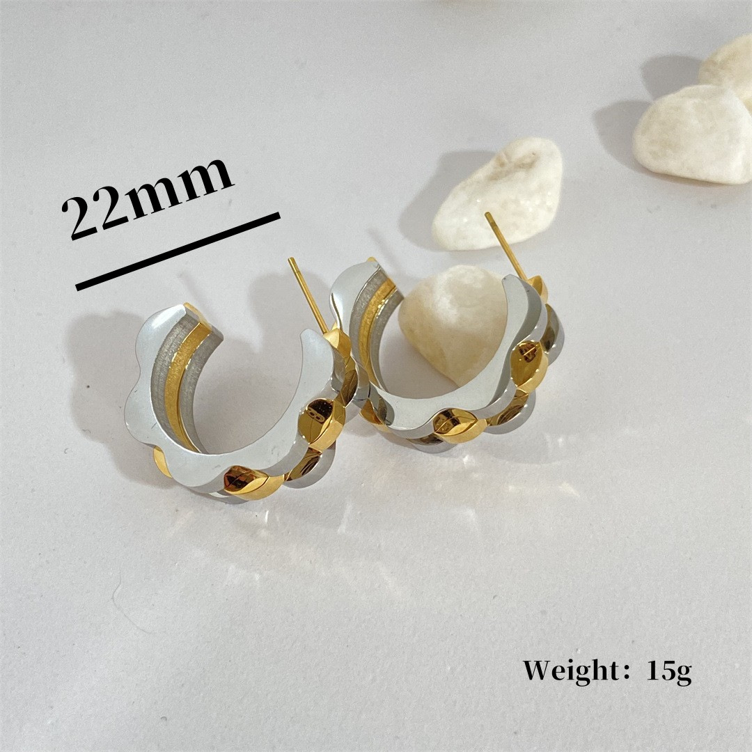 Product information:Treatment Process: gold inlaidColor: gold height 22mm large, two-color height 22mm large, steel color height 22mm largeMaterial: titanium steelShape: GeometricPopular elements: quadrilateralStyle: Retro
