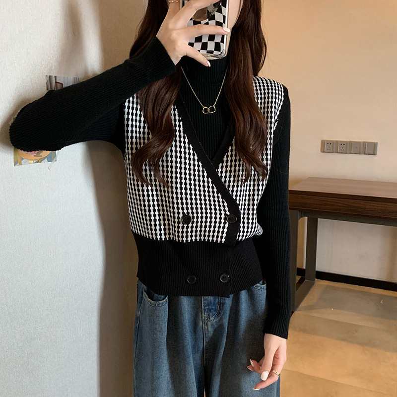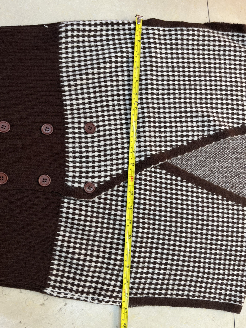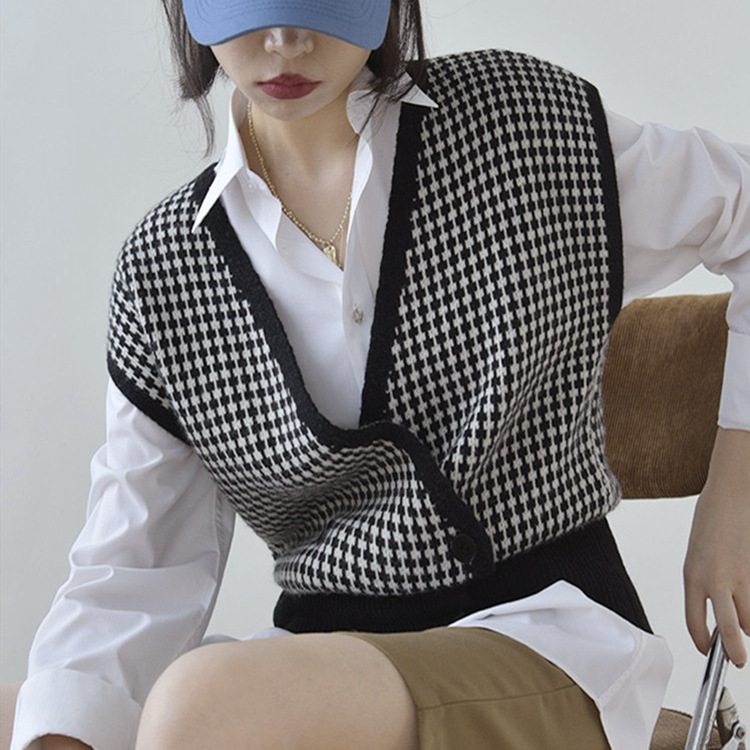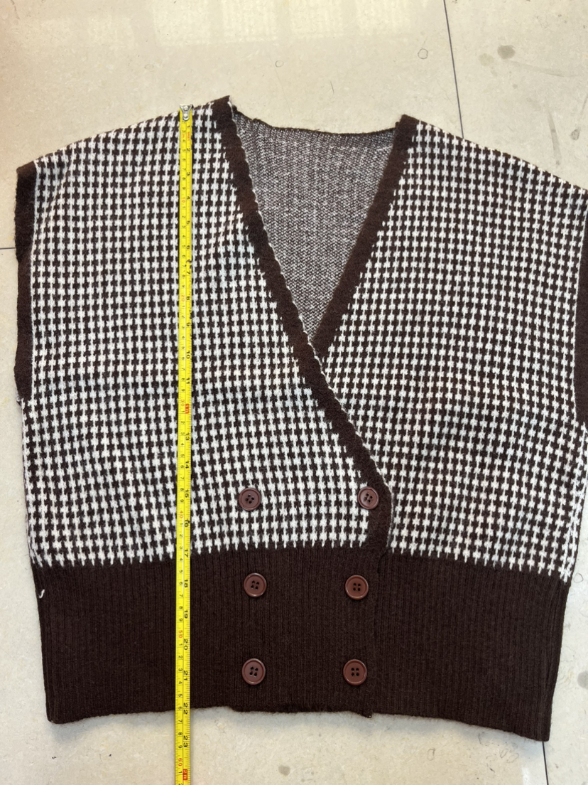 Product information:Fabric name: AcrylicMain fabric composition: acrylicThe content of the main fabric ingredient: 30%-50%Style: cardiganCraft: collage/splicingColor: black, coffeeSize Information:Size: one sizePacking list:Knit vest*1