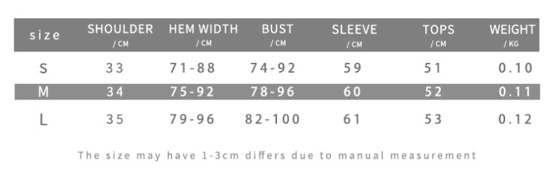 1. Asian sizes are 1 to 2 sizes smaller than European and American people. Choose the larger size if your size between two sizes. Please allow 2-3cm differences due to manual measurement. 2. Please check the size chart carefully before you buy the item, if you don't know how to choose size, please contact our customer service. 3.As you know, the different computers display colors differently, the color of the actual item may vary slightly from the following images.