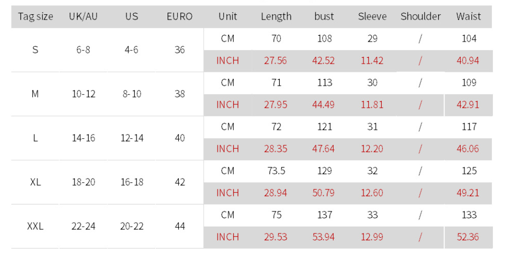 1. Asian sizes are 1 to 2 sizes smaller than European and American people. Choose the larger size if your size between two sizes. Please allow 2-3cm differences due to manual measurement.