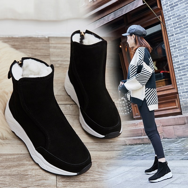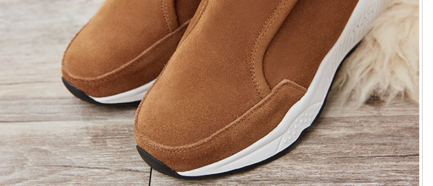 Function: wear resistantPurpose: To keep warmVamp material: suedeSole material: rubberUpper height: highToe tip shape: round toeStyle: Korean version