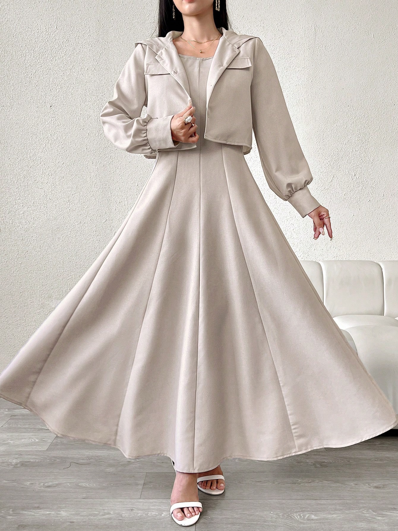 Product information:Composition: Polyester100Size Information:Dimensions: S,M,L,XLPacking list:Top*1+ dress *1