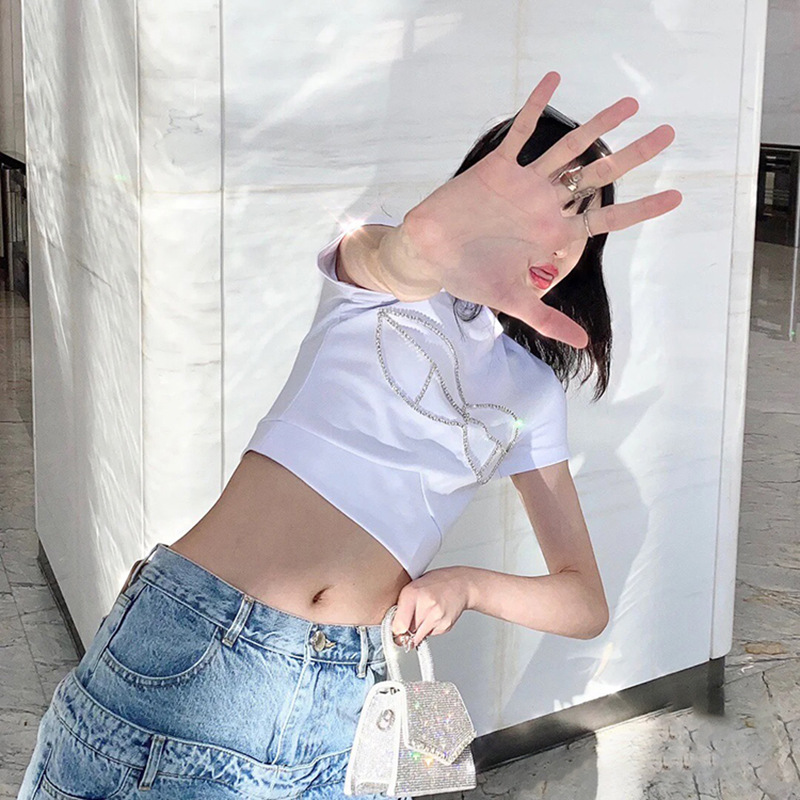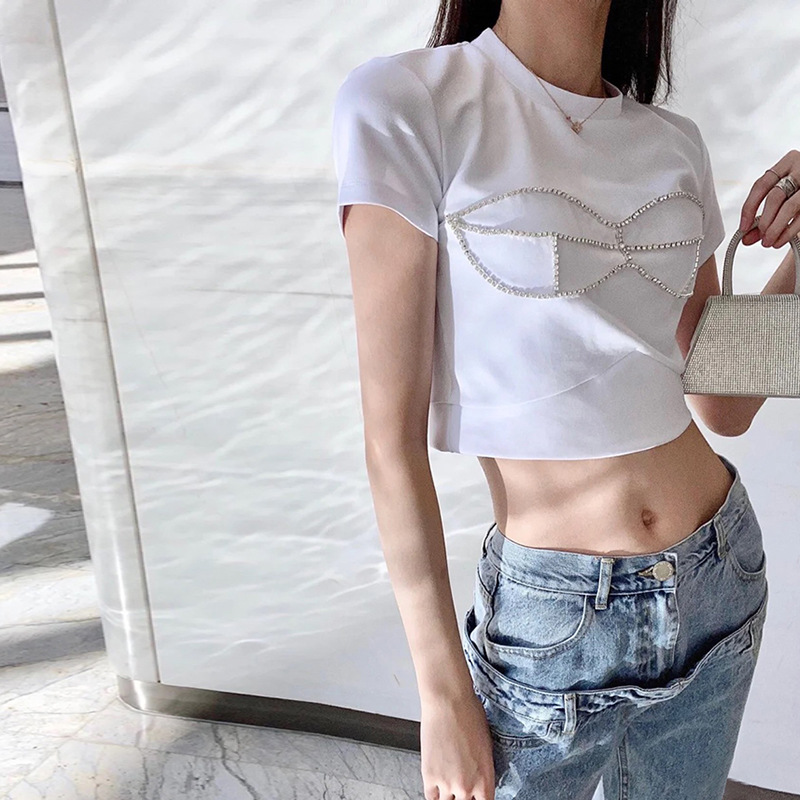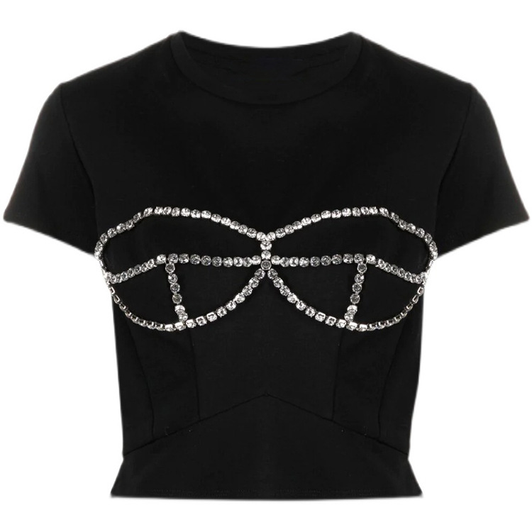 Short-sleeved T-shirt With Rhinestone Design