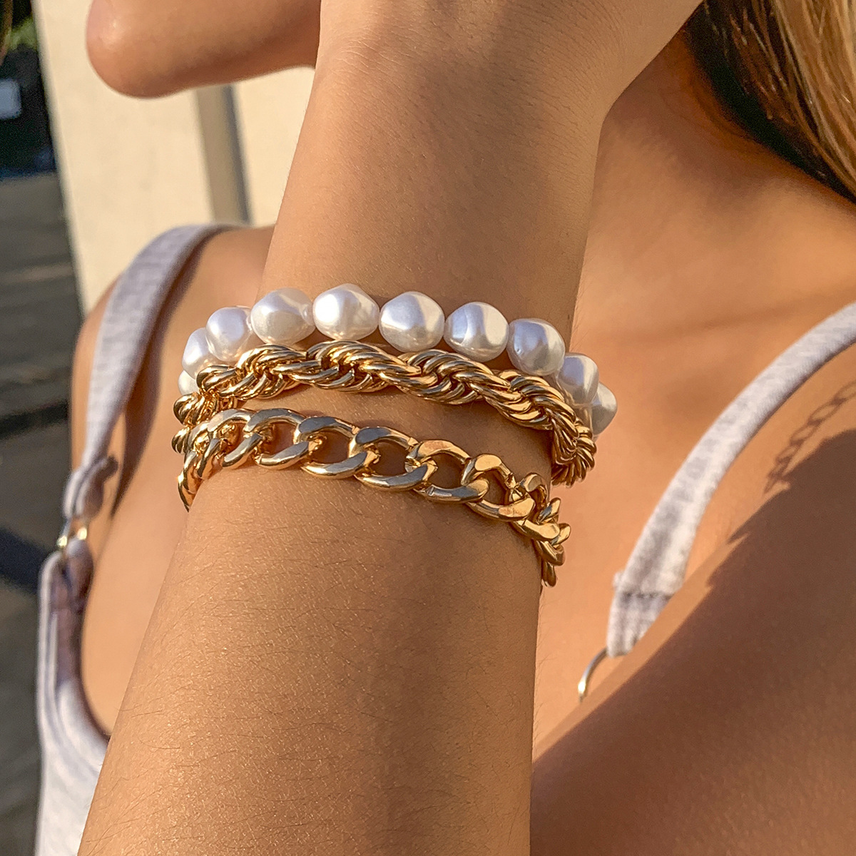 Product Information:Material: plastic/resinType: BraceletStyle: Women'sModeling: geometricInlaid material: not inlaidColor: Gold Suit 2697Packing List:Plastic bracelet x1