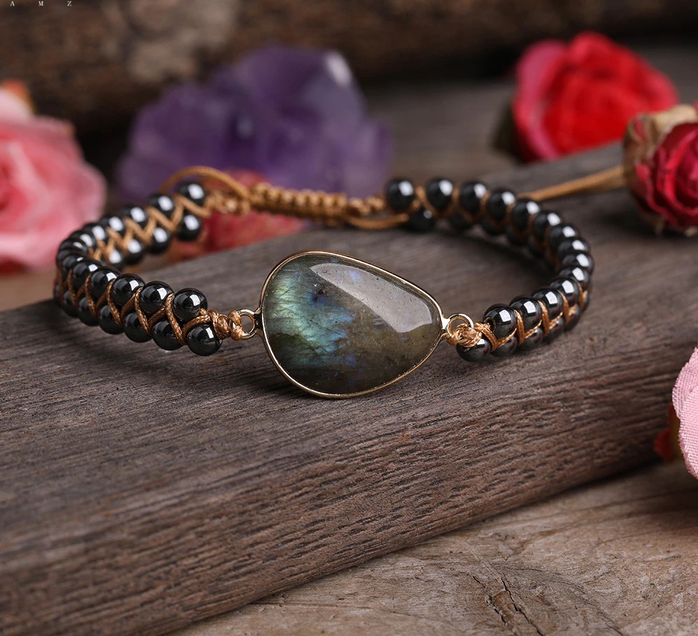 Labradorite Double Braided Bohemian Beaded Bracelet