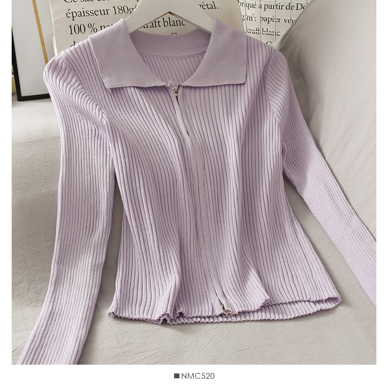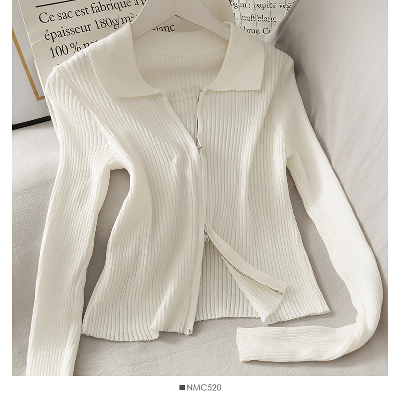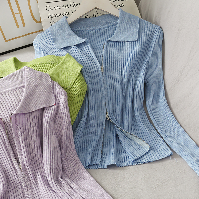 Personalized Double-Headed Zipper Tight-Fitting Vertical Stripes Long-Sleeved Knitted Cardigan Jacket Women Slim Slimming Short Knitted Jacket