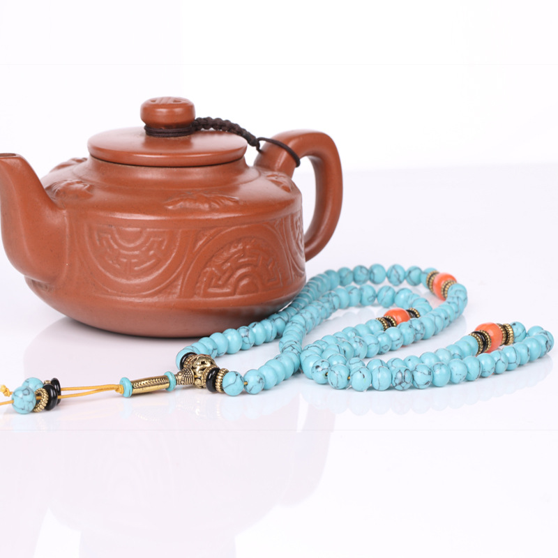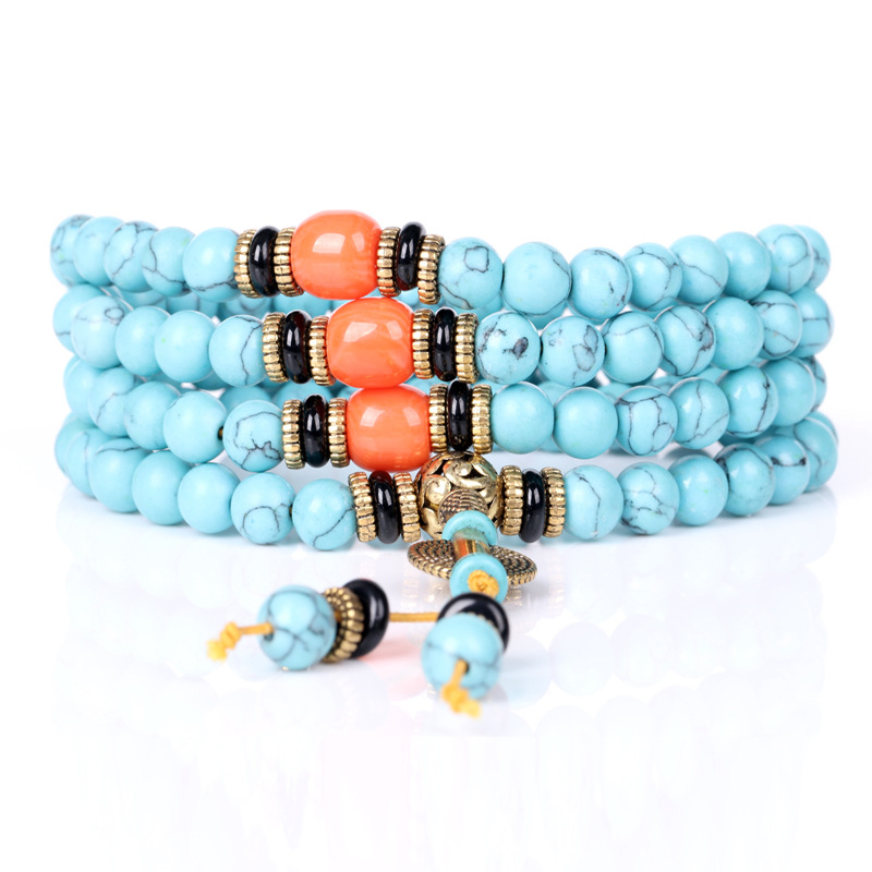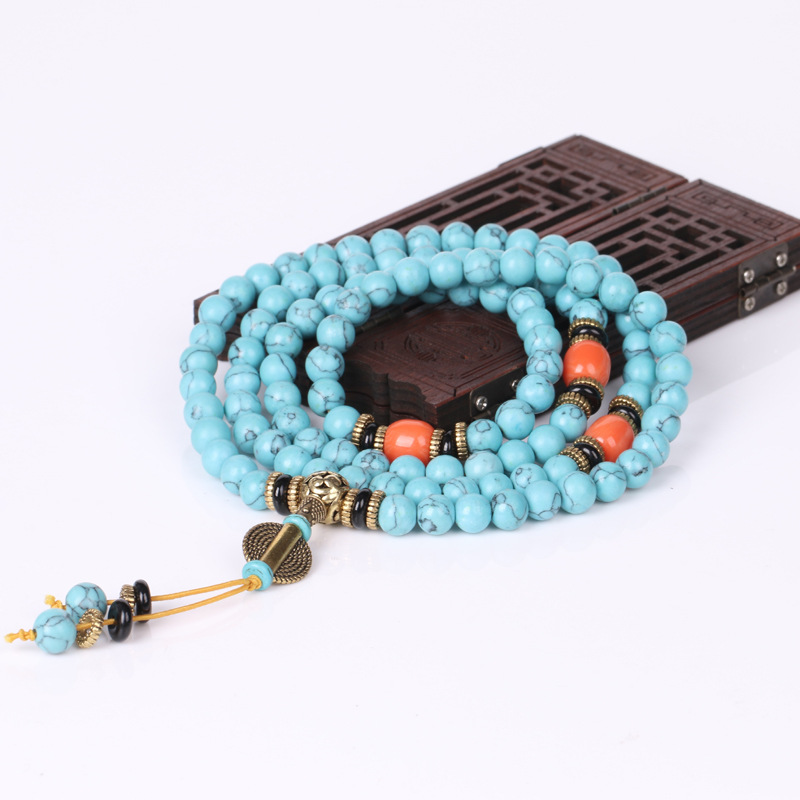 Material: TurquoiseProcess: PolishingCategory: braceletsReligion: BuddhismSize: Black line 8MM, yellow line 8MMMaterial: TurquoiseSize: 8*10*108