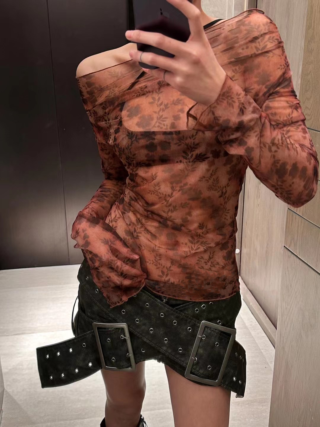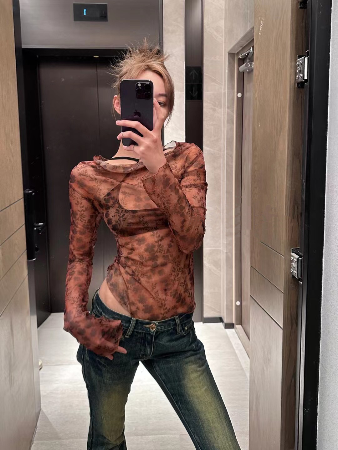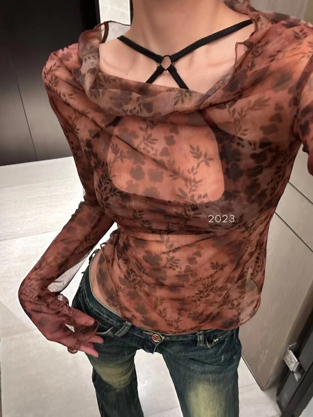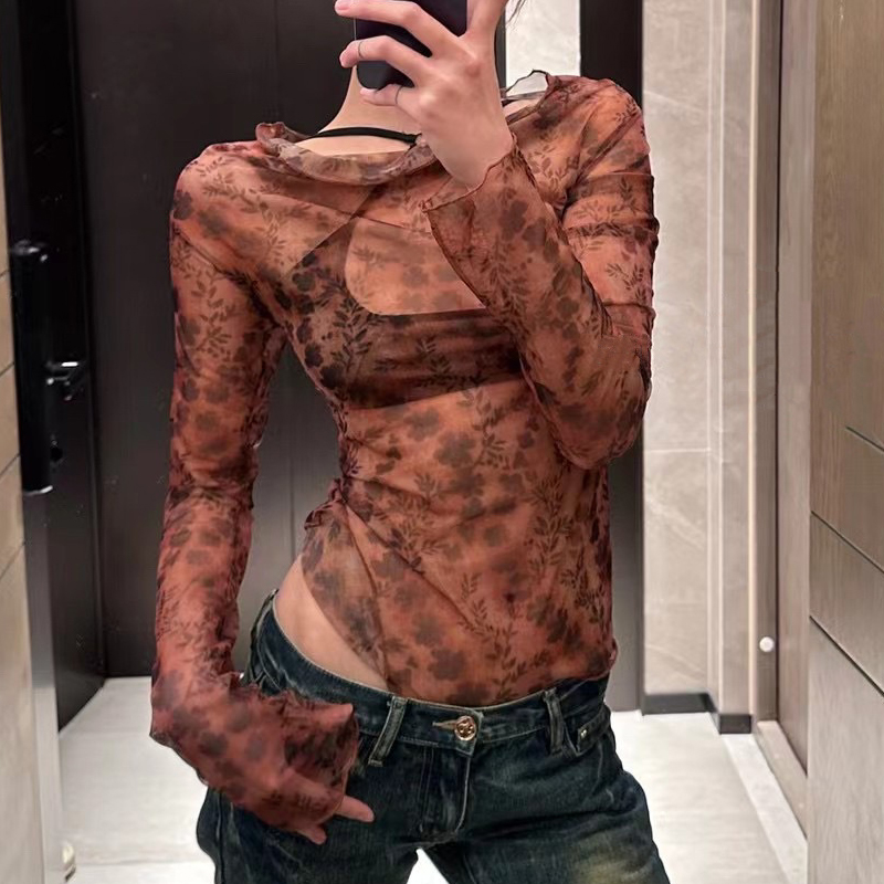 Product information:Pattern: plants and flowers Fabric name: Mesh Color: Picture colorMain fabric composition: Polyester Size: S,M,LStyle: slim fitStyle: pullover Style: sweet and spicy