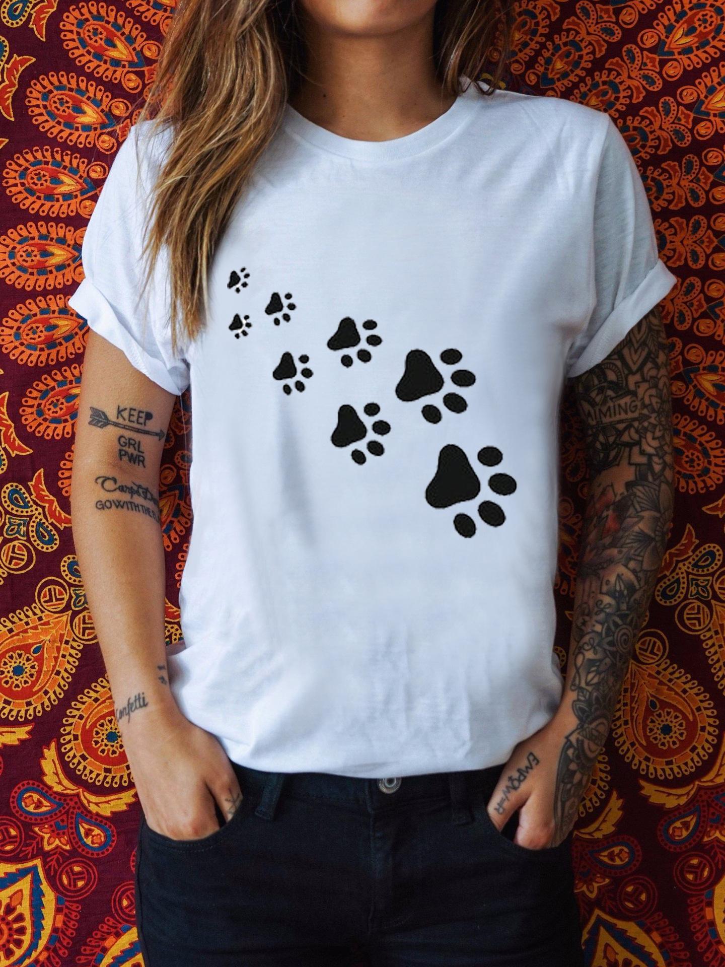 Geometric footprint pattern printed ladies short-sleeved T-shirt top