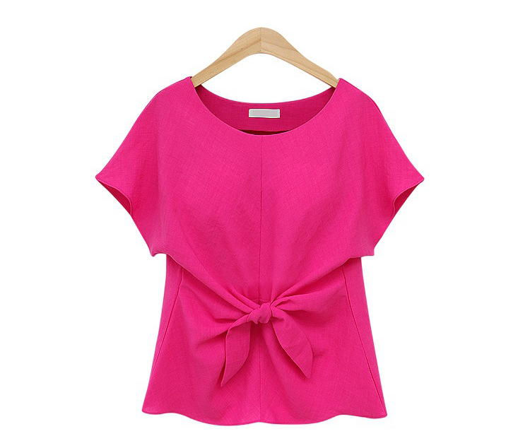 USA SIZE Round neck chiffon shirt short-sleeved T-shirt bow tie chiffon shirt