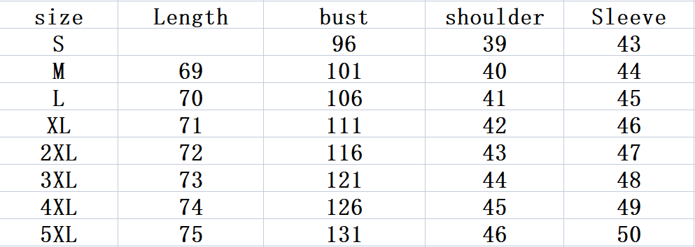 Size: S/M/L/XL/XXL/3XL/4XL/5XL