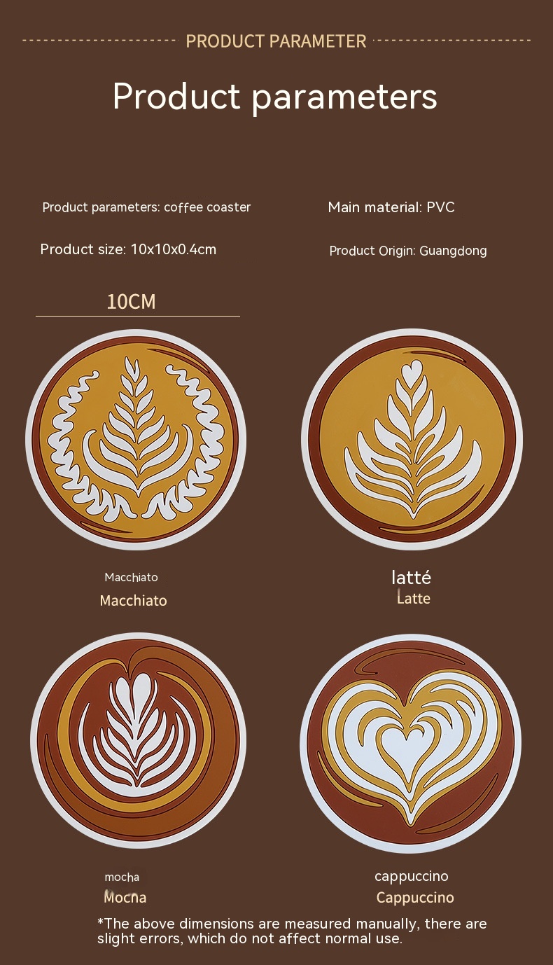 Product information:Pattern: FlowersColor: Mocha, latte, macchiato, cappuccinoMaterial: PVCStyle: European styleShape: round