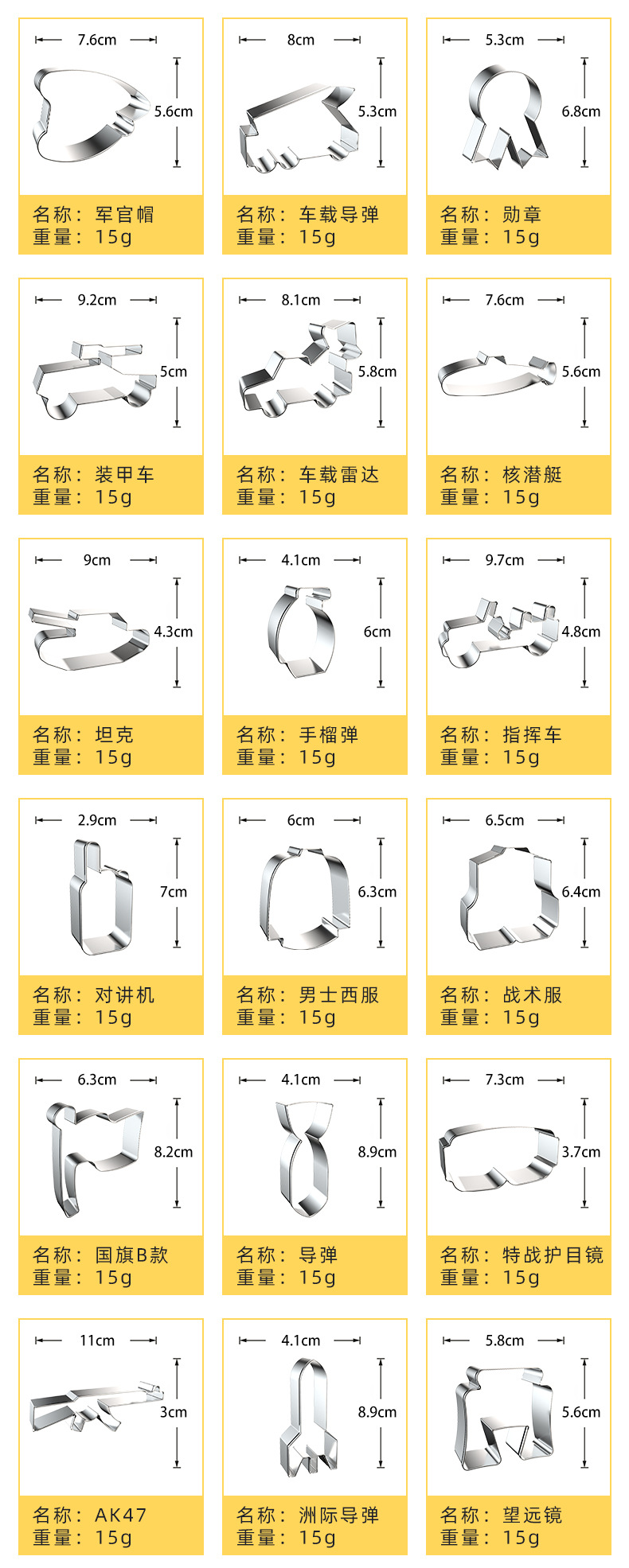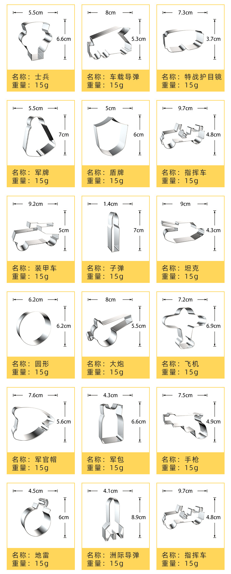 Uses: biscuits, fruit cutting mold