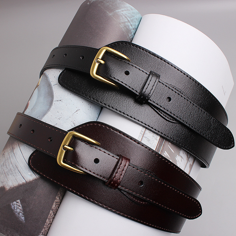 Material: two-layer cowhideStyle: fashionColor: black, brownSize: Full length 94cm, belt width 2.5-7.5cm