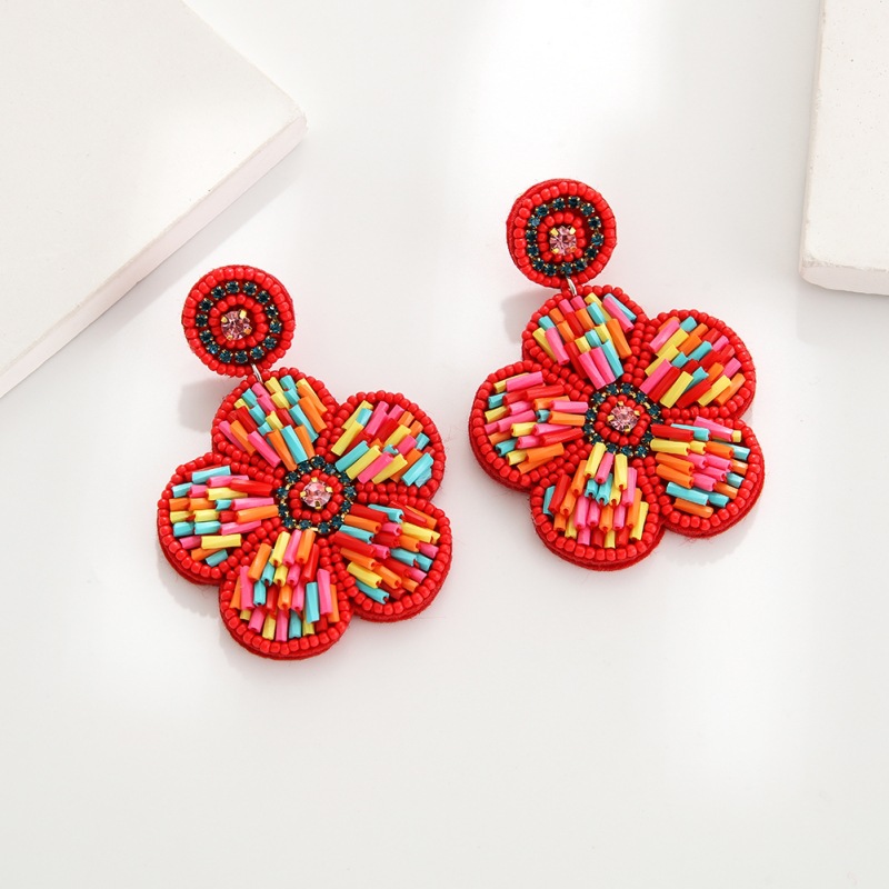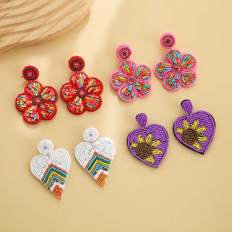 Product information:Processing Technology: manual Color: EA2147 red flowers, EA2147 pink flowers, EA2147 White Love, EA2147 purple love Applicable population: Female Material: beads Shape: heart-shaped, flower Size: 5X7cm