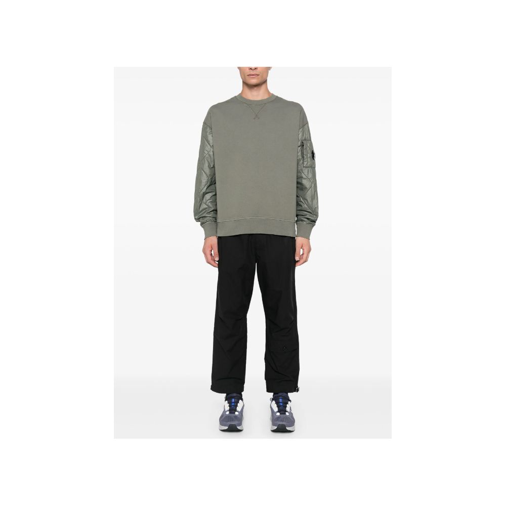 c.p. Company, 100% cotton sweatshirt, with green nylon sleeves, with iconic goggle on the left side