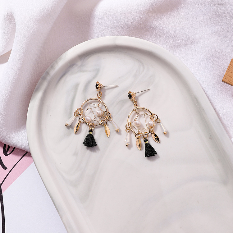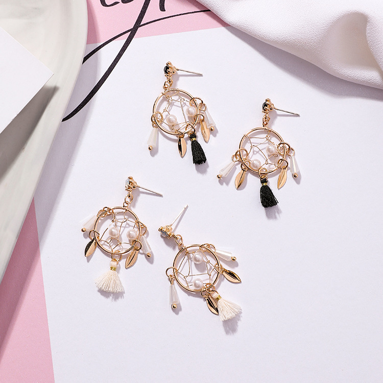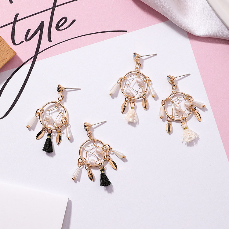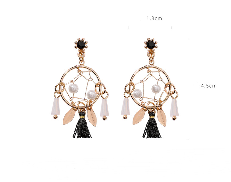 Name: Dreamcatcher Tassel EarringsStyle: KoreanModeling: GeometricTreatment process: electroplatingMain material: Plating alloyColor: two colorsWeight 6.8g Length: 4.5cm Width: 1.8cm