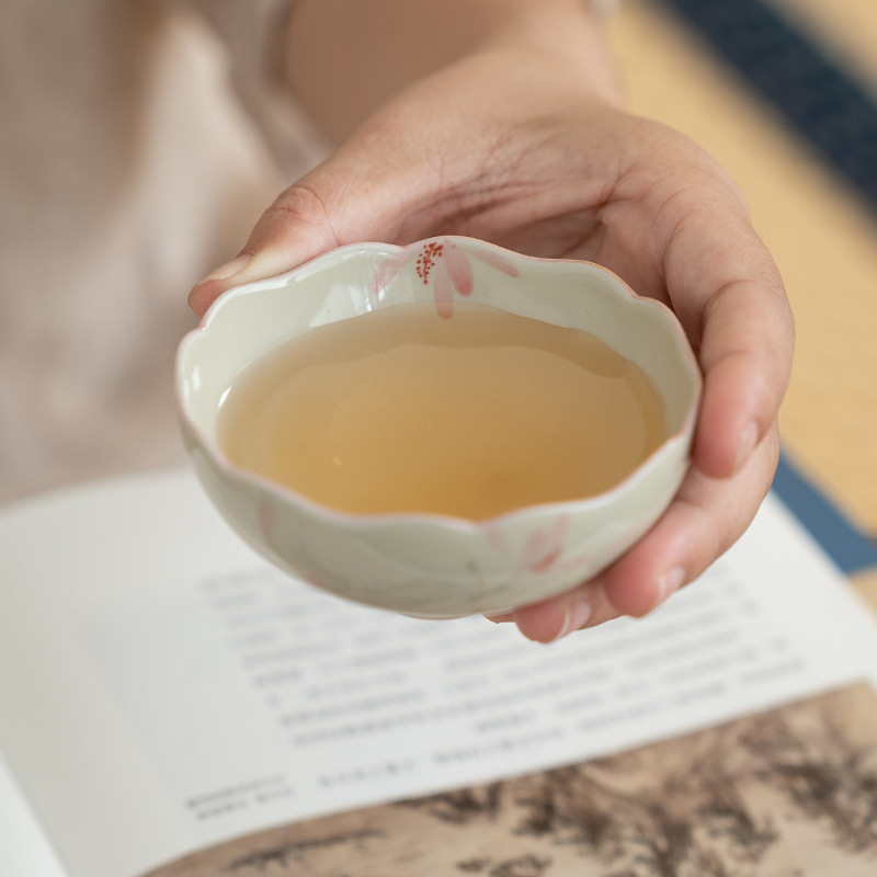 ICE Table Hand Painted Pink Magnolia Lotus Cup Owner Ceramic Cup