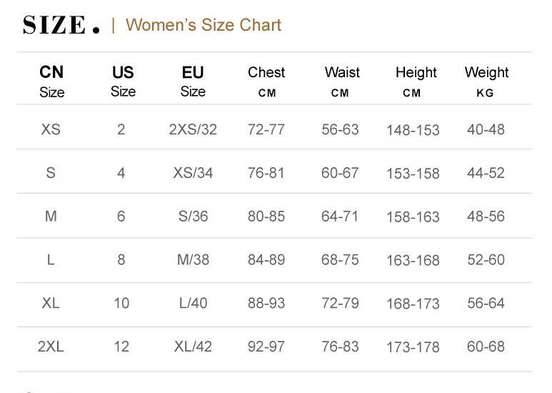 1.Asian sizes are 1 to 2 sizes smaller than European and American people. Choose the larger size if your size between two sizes. Please allow 2-3cm differences due to manual measurement.